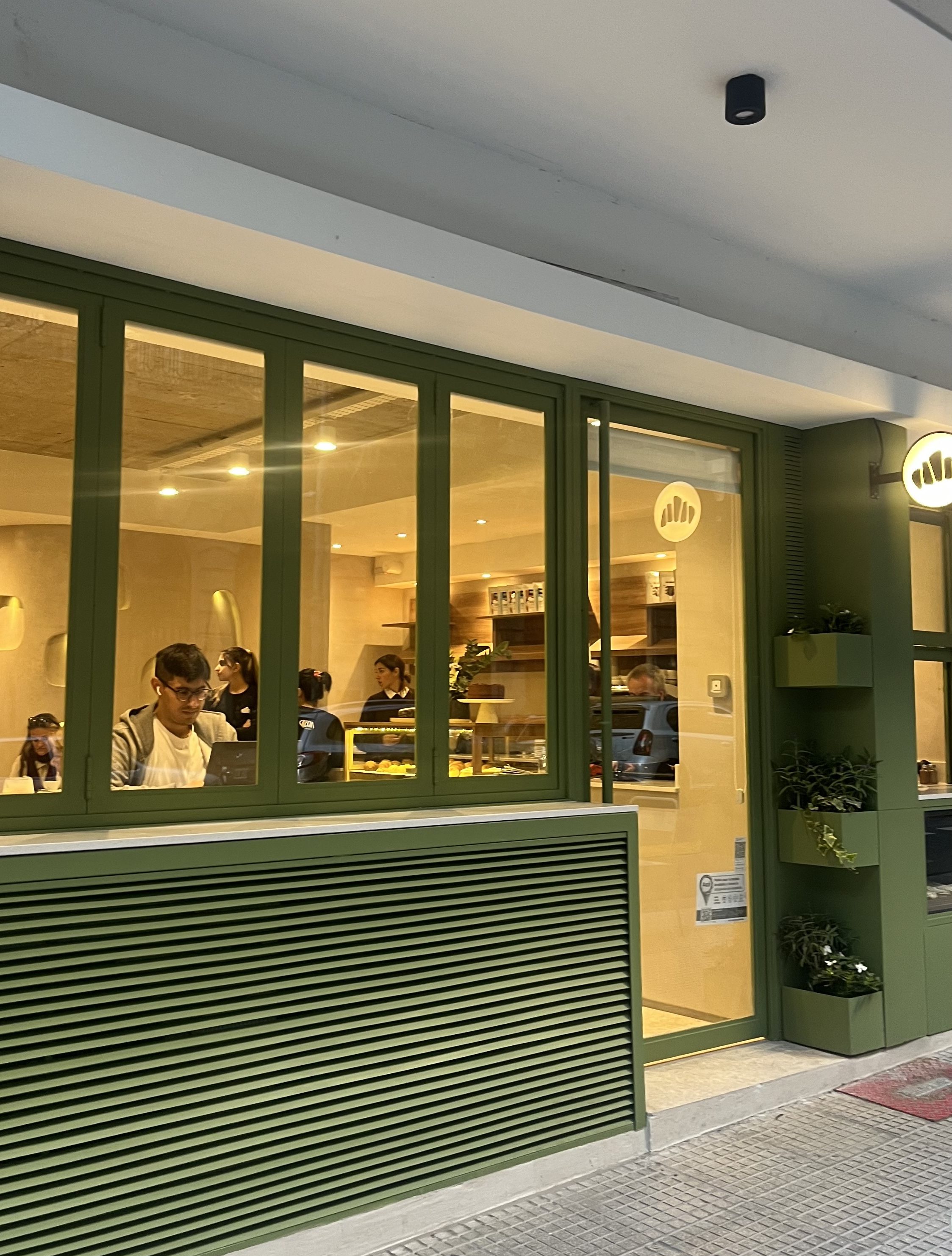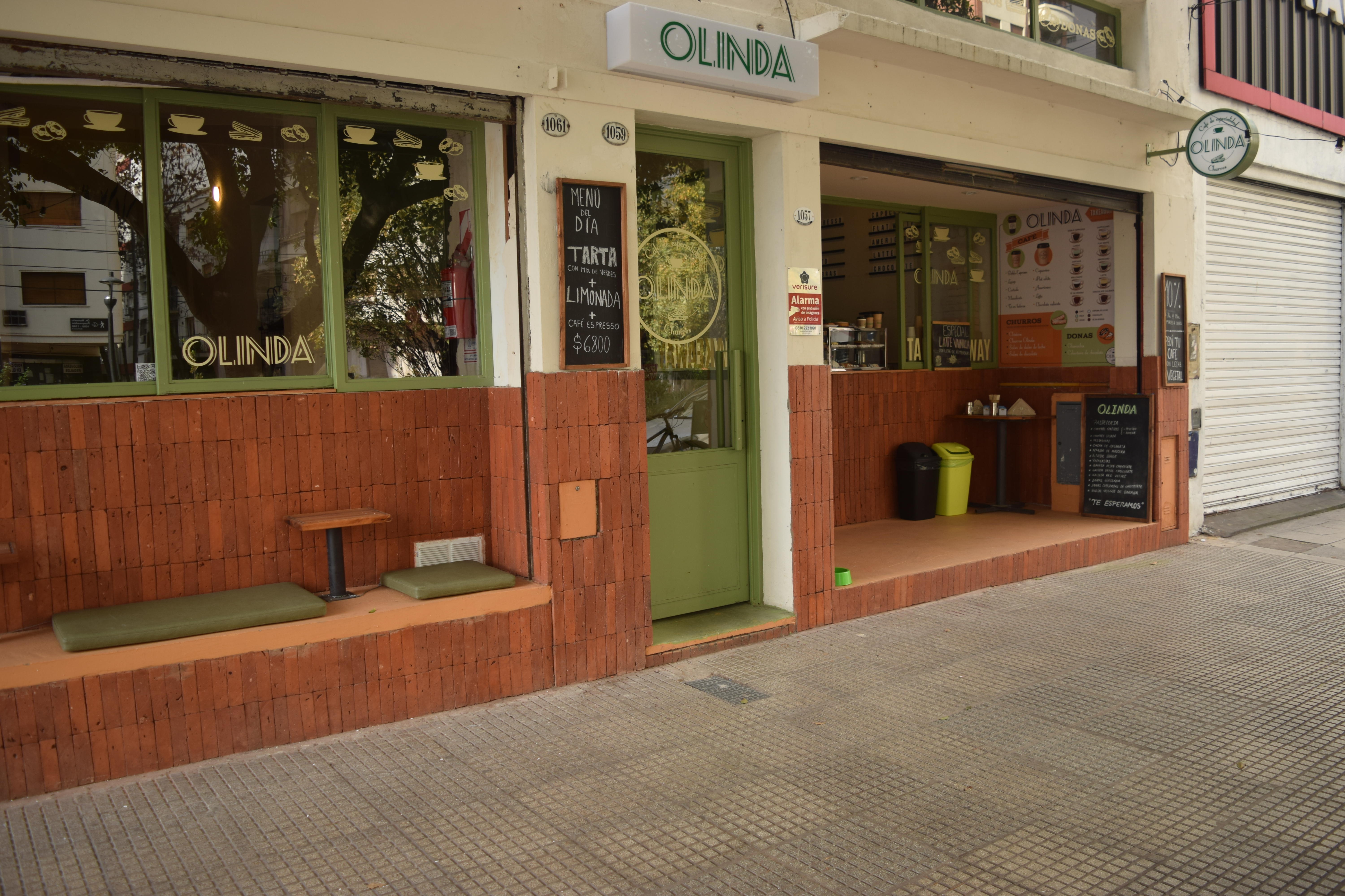Desde el 3 de mayo, Olinda se consolidó como un nuevo vecino en el barrio de Caballito. Sus mesitas verdes en el exterior y una ventanilla para llevar, llaman la atención de quienes pasan por el cruce de Av. Gaona, Honorio Pueyrredón y Ángel Gallardo. Adentro, una distintiva escalera verde, un mural de flores pintado sobre ladrillos y un ventanal para mirar los árboles que se asoman.