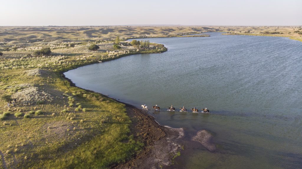 “El verdadero viaje transformador es aquel que nos permite conocer nuevas culturas, historias y formas de vida, enriqueciendo nuestra perspectiva del mundo”, cavila Remigio. Recuperar la cultura gaucha, en pocas palabras. El lodge es explícito en su guión: escapar del mundo moderno y retroceder el almanaque para poder recuperar la vida sencilla en el campo con sus actividades, esto significa algo maravilloso: compartir los días con los gauchos y ser parte de su dinámica laboral. A los visitantes se los invita a cabalgar para arrear hasta mil cabezas de ganados por las praderas, comer un asado en una manga o en un puesto. Placeres sencillos, ampliar la mirada en un horizonte medular. Cruzando aguadas, lagunas y descubriendo una pampa fértil y fresca. Otra opción: hacer un picnic en la pradera.