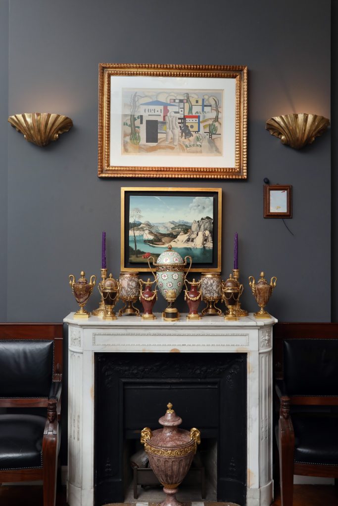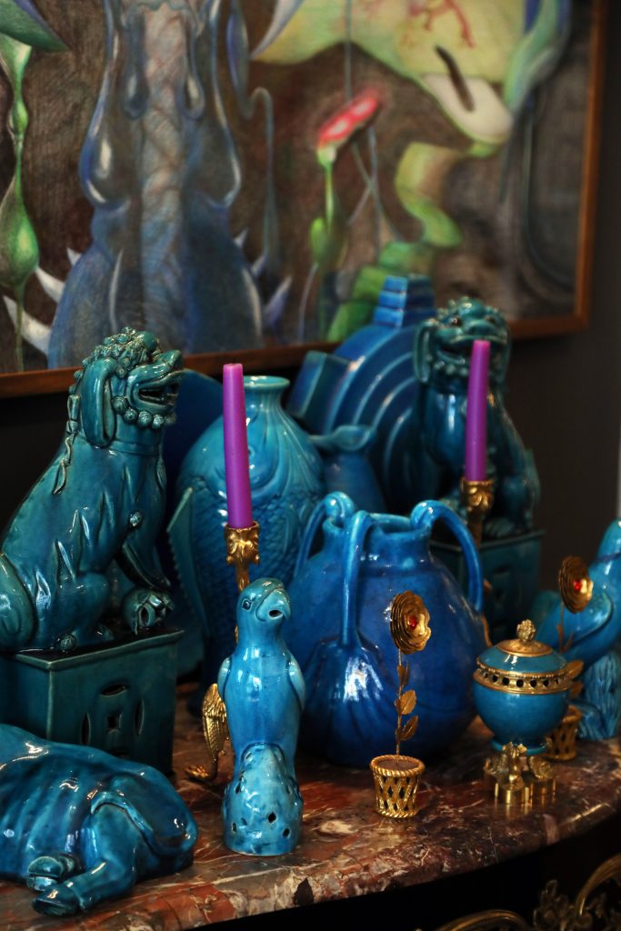 Una tinta de Kandinsky se asoma dando cuenta de la primera etapa de esta colección. En el comedor, las paredes rojo pompeyano sostienen dos obras de colores vibrantes de la argentina Amparo Viau, realizadas en pastel tiza sobre papel pegado a tela. Nuevo Cubismo, se titula otra, de Pablo Rosales, de seis módulos pintados en acuarela, intercambiables como un rompecabezas. «Renuncié a la necesidad de convencer al otro», declara rotundamente un cuadro de Gustavo Nieto.
