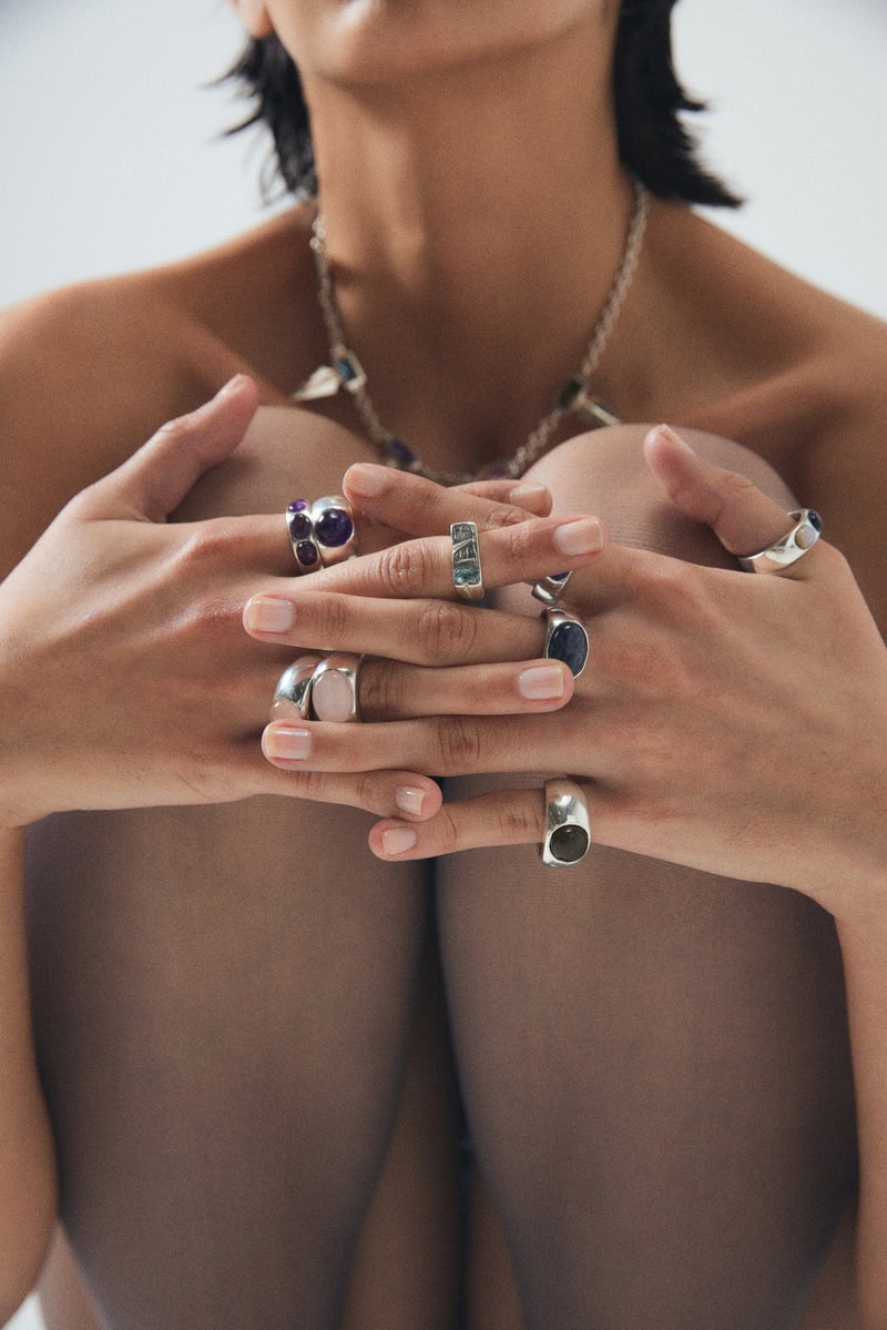 La artesanalidad llega a su pico con Not Quite. La firma de joyería de Ana Carcano mantiene viva la tradición de fundición, realizando todas sus piezas en plata. Las superficies pulidas, piedras preciosas naturales y estructuras o grabados de formas abstractas crean cierto misticismo. «Desde chica tuve una conexión con la joyería, ayudando a mi mamá a armar collares con piedras que traía de sus viajes. Esa fascinación por los materiales y las formas me llevó a explorar el modelado con cera perdida y, con el tiempo, a fundar Not Quite.», cuenta Ana. Una combinación que resulta en amuletos que trascienden generaciones y hoy llegan al escenario global. «Estamos en cada detalle, intención y técnica. Cada pieza de joyería está diseñada para perdurar en el tiempo, convirtiéndose en un tesoro atemporal y eterno”, agrega.