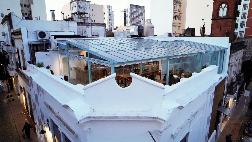 En lo alto de un edificio centenario de San Telmo, donde alguna vez se apilaba carbón, hoy se enciende la brasa. La Terraza de La Carbonera abre sus puertas con paredes y techo de vidrio que dejan entrar toda la luz del barrio, mesas de madera, sillas de pana bordó y una barra visible rodean la cocina abierta, donde el fuego domina cada preparación. Desde el café con pastelería casera hasta la “hora del vermú”, cada detalle invita a quedarse, mirar la ciudad desde otra altura y disfrutar del ritmo pausado de un lugar que combina historia con diseño contemporáneo.