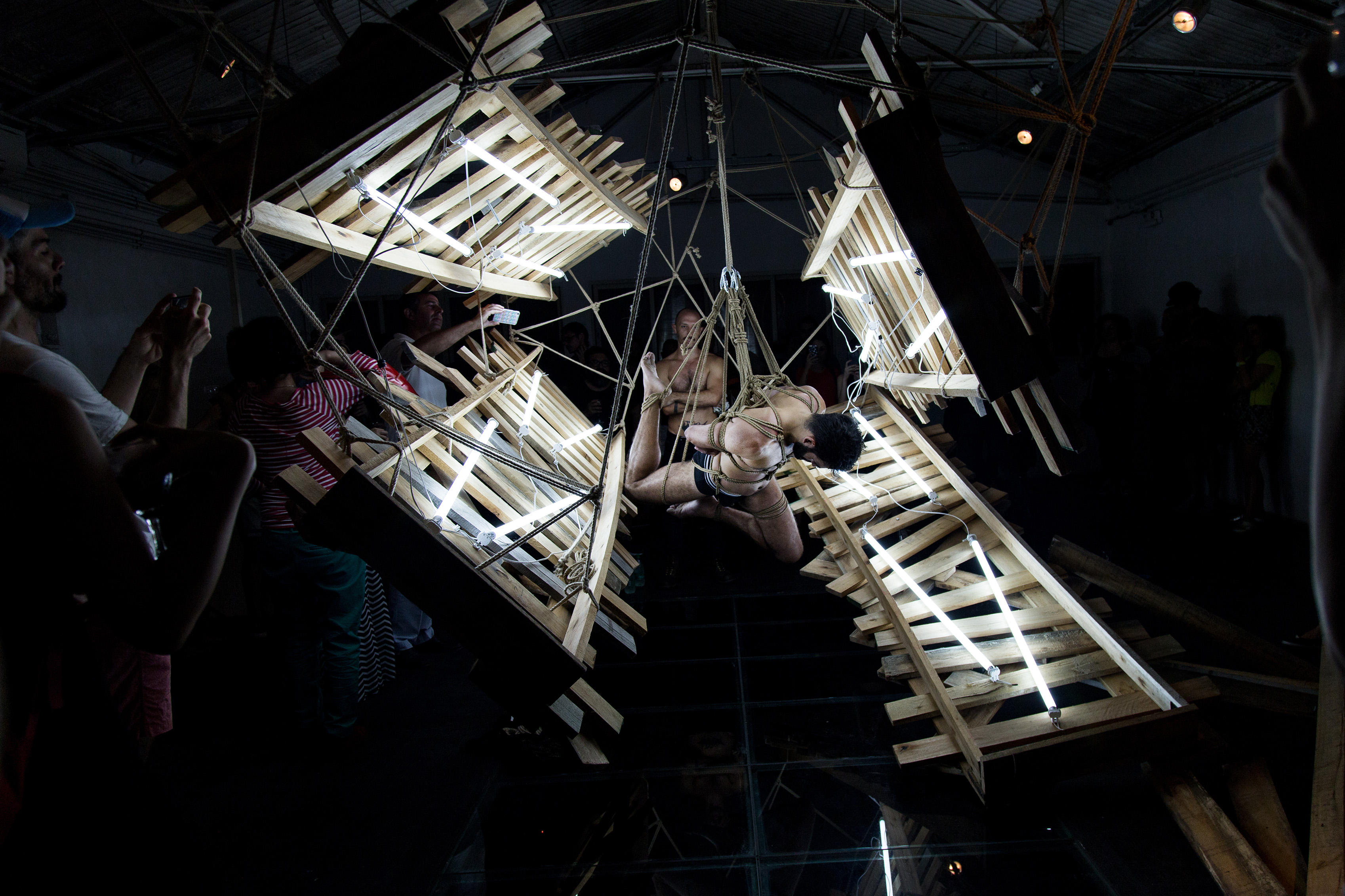 Cuando hago una acción la gente se queda consternada ya que empatiza y quiere entender que le está pasando a ese cuerpo suspendido con el que estoy trabajando, ya sea que piensen que está sufriendo o gozando, ambos extremos los atraen. Eso en general es una situación muy intensa y el año pasado finalmente lo entendí. Había en parte por la necesidad de estar cerca de esa energía y erotismo, algo que no siempre encontrás cuando trabajas de manera tradicional en el taller y luego mostrás tu obra en algún lado.