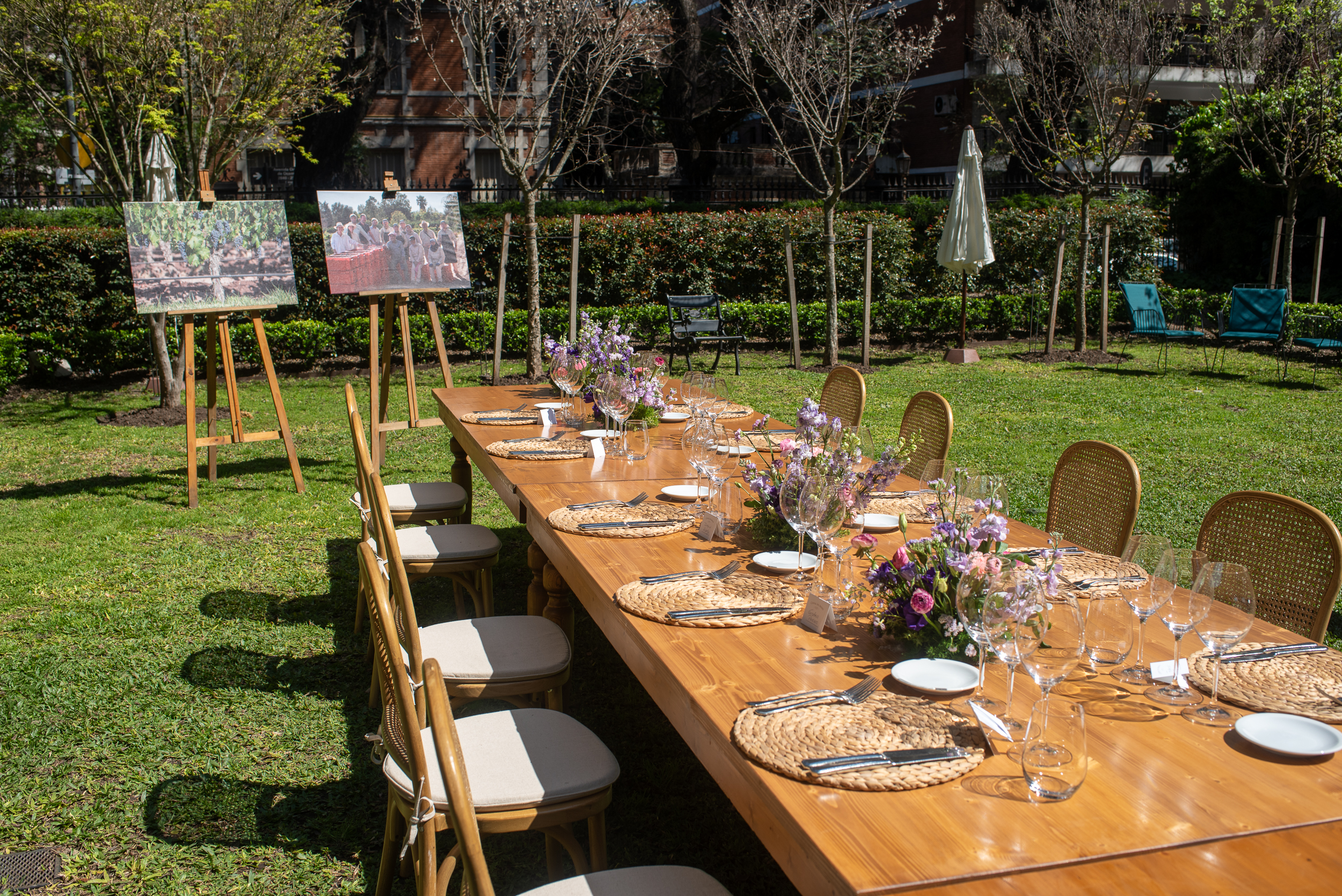 Nos recibió una gran mesa primaveral en el jardín de la casa de Moët Hennesy, en Palermo.