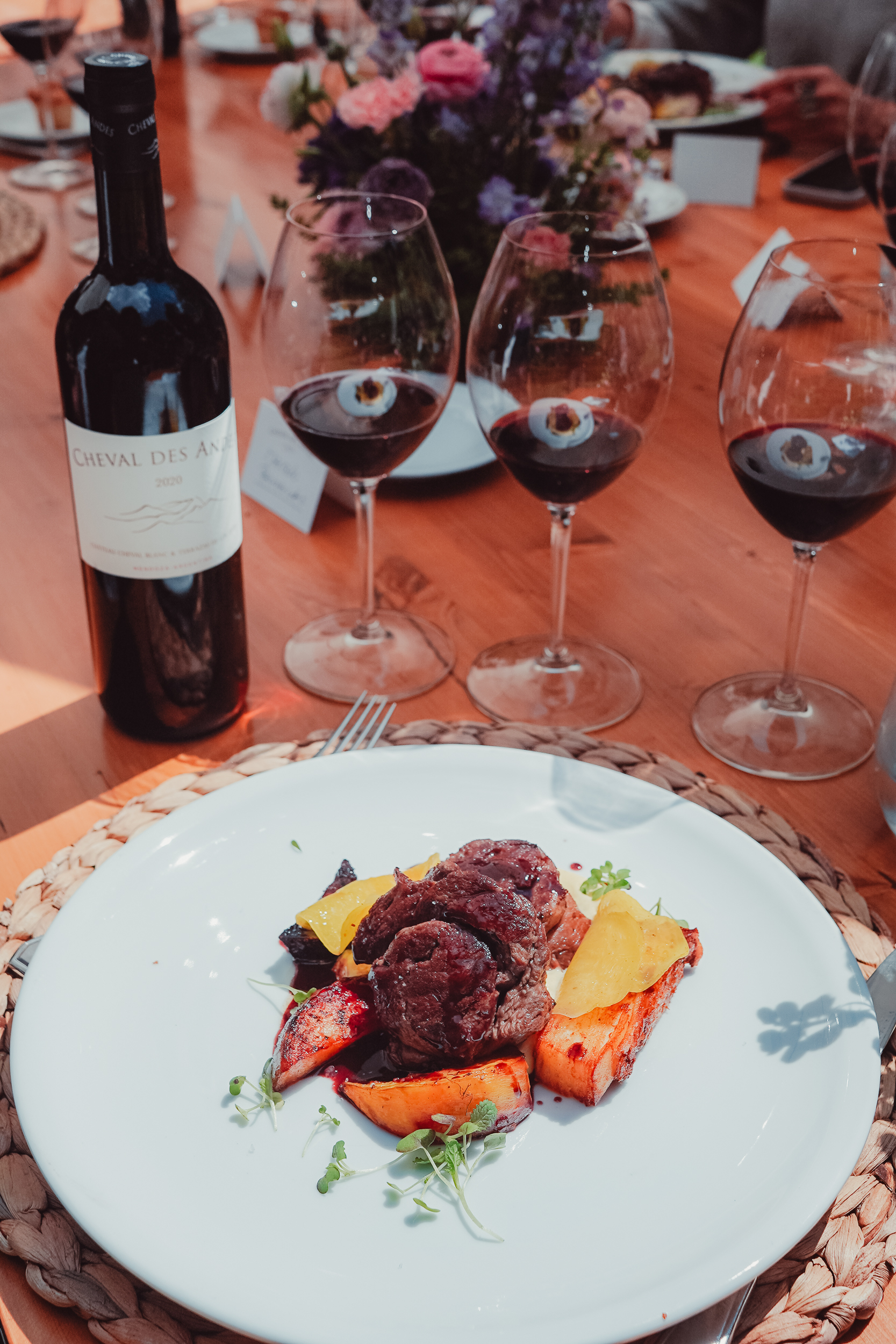 El miércoles pasado llegó la verdadera primavera al jardín de la fantástica casona de Moët Hennesy, en Palermo. Con una mesa larga sobre el pasto, flores frescas en tonos rosas y violetas, un menú de EAT catering y copas ansiosas, nos recibió Gérard Gabillet para presentar la cosecha 2020 del exclusivo vino Cheval des Andes, la bodega hija de la unión entre la francesa Cheval Blanc y la mendocina Terrazas de Los Andes.