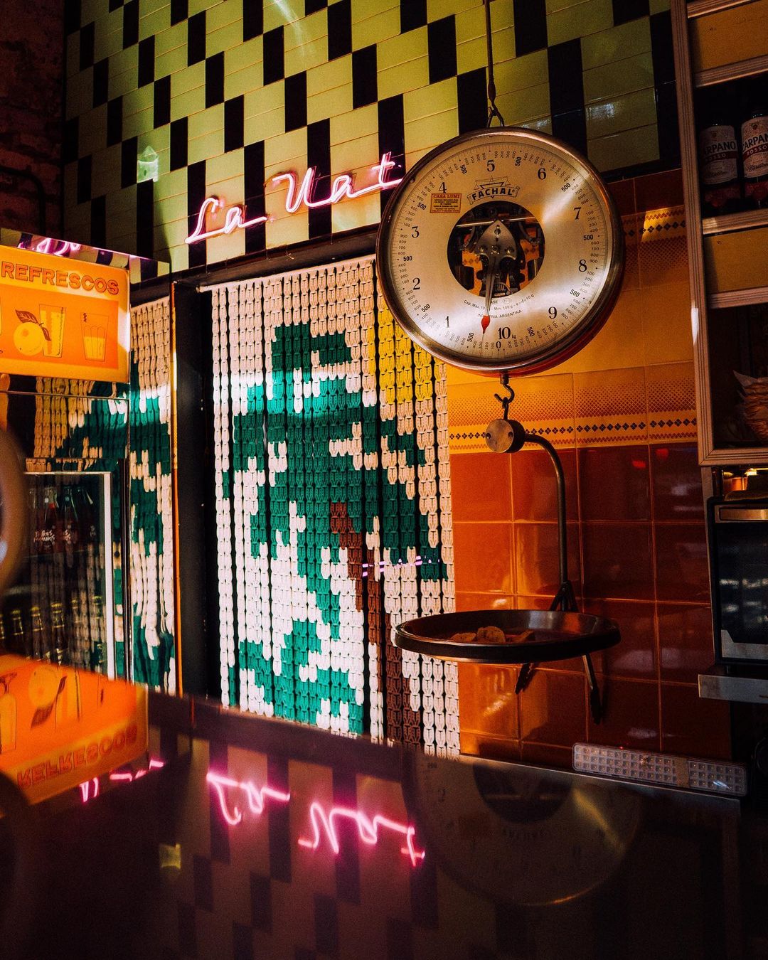 En contra de la icónica frase de Moria Casán -escrita en una de sus paredes-: “el decorado se calla”, en este bar el decorado grita más que cualquier otro, tiene un estilo psicodélico con luces de neón, una gigantesca bola de boliche, barra luminosa, y hasta cócteles coloridos.
