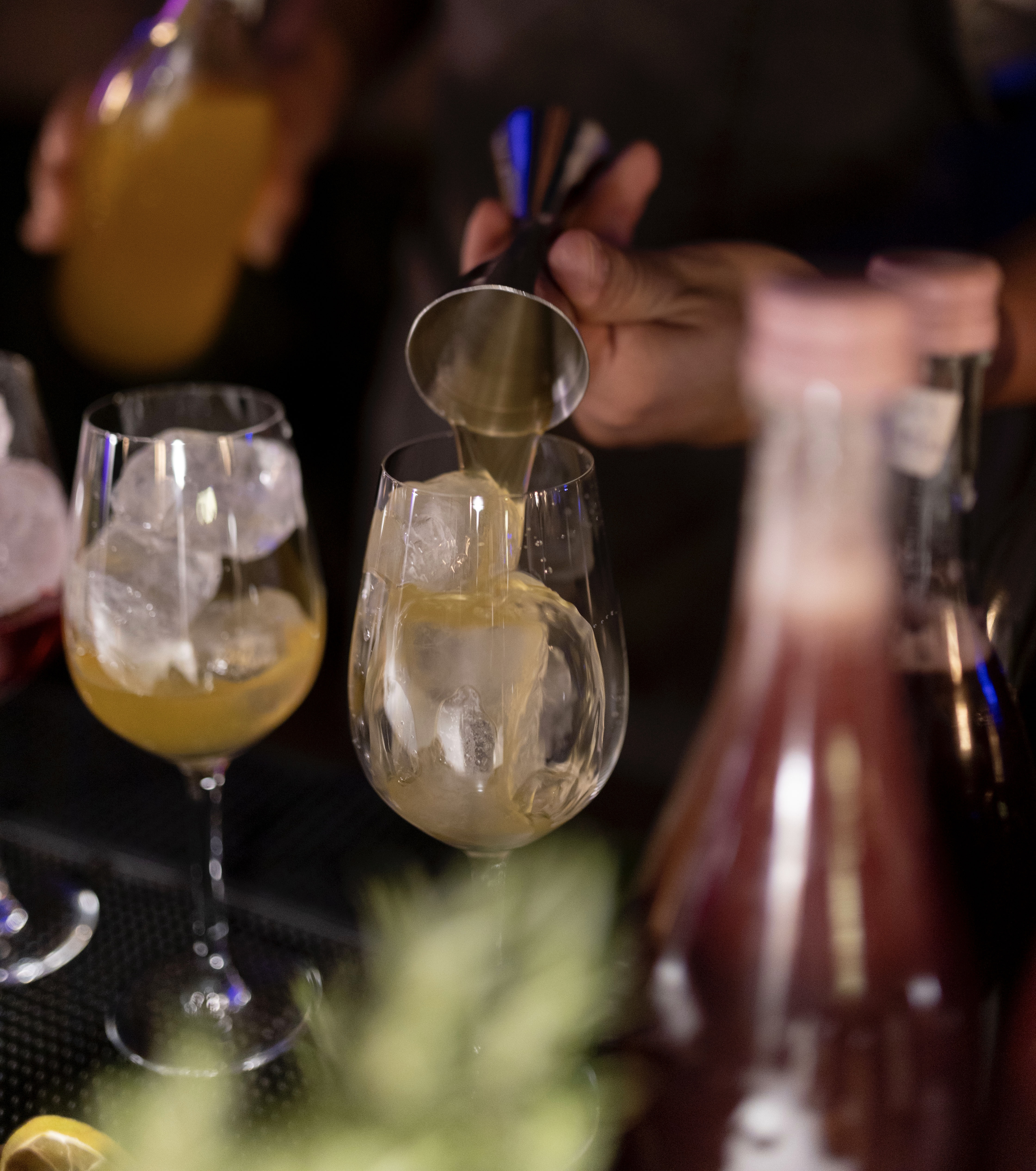 Obviamente, los tragos también se elaboran con productos nacionales presentes en el mercado. Algunas de las opciones son el Gin Gina de Neuquén con vino de flores Blumbey, taco de reina y tónica Pulpa Blanco, vermú rosado de La Fuerza y cócteles con jugo de tomate de árbol y naranjas sanguíneas.