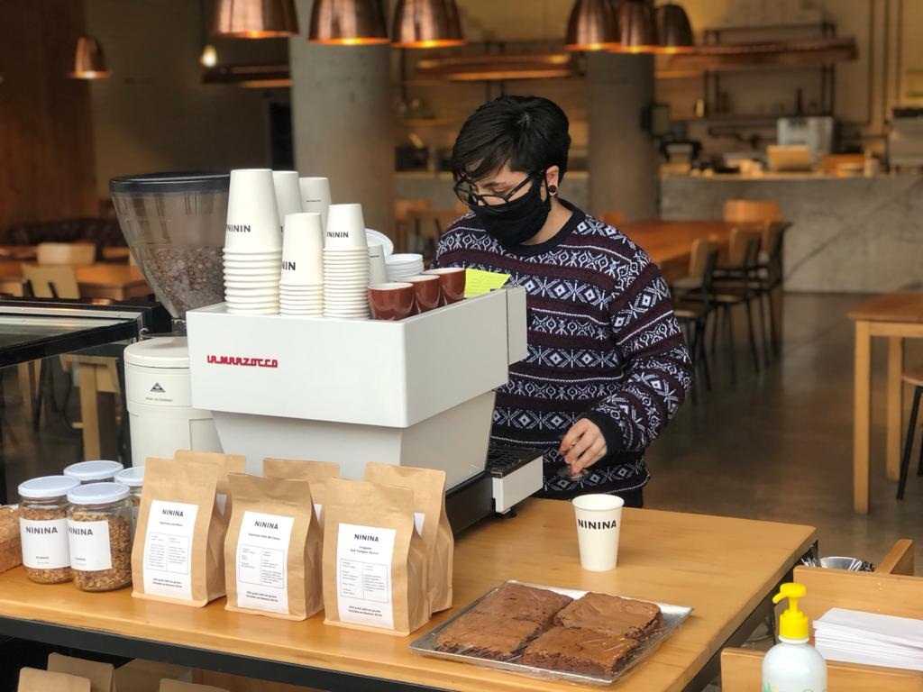 En las sucursales de Ninina de Donado Holmberg y de Palermo, también ubicaron mesas en la entrada para que los clientes puedan hacer su pedido desde la vereda. Además en la página web existe la opción de hacer la compra y elegir que vas a retirar el producto a una hora específica por uno u otro local. «En los casos que pasan a buscar su pedido o gente que pasa por delante de los locales, se da bastante la situación de que preguntan si estamos vendiendo café y muchas veces se tientan y piden. Se lo toman mientras esperan otra cosa o se lo llevan caminando. Miedo por ahora no vemos. Y en general estamos hablando de gente que ya nos conoce de antes…», explica el dueño y creador de la carta de Ninina Emmanuel Paglayan. A diferencia de lo que pasaba antes, la gente tiene mucho más paciencia hasta que su pedido esté listo, por ejemplo cinco minutos para esperar unos croissants recién salidos del horno. Los cafés que más se piden son: el latte, el capuccino, el flat white, el americano.