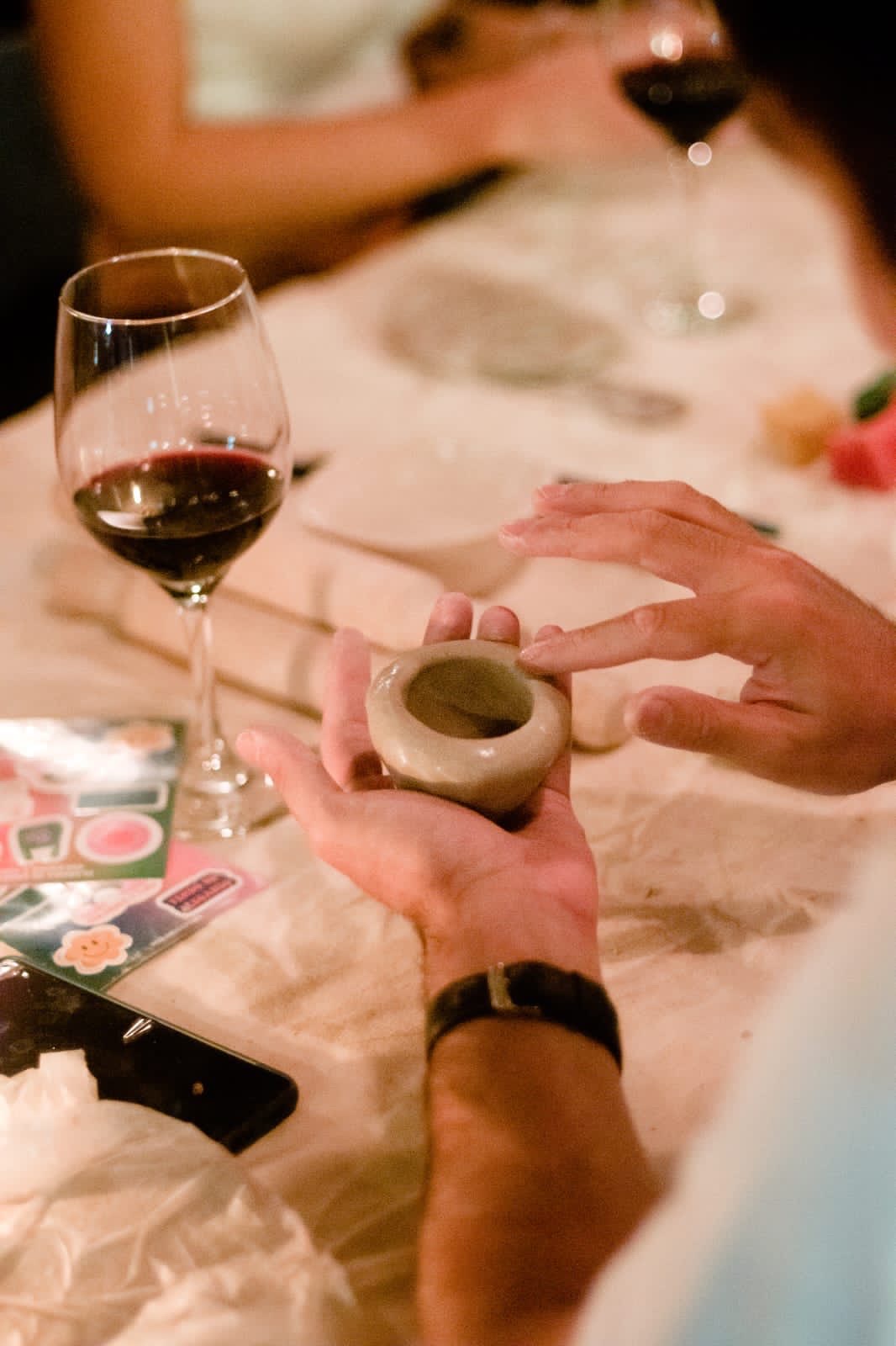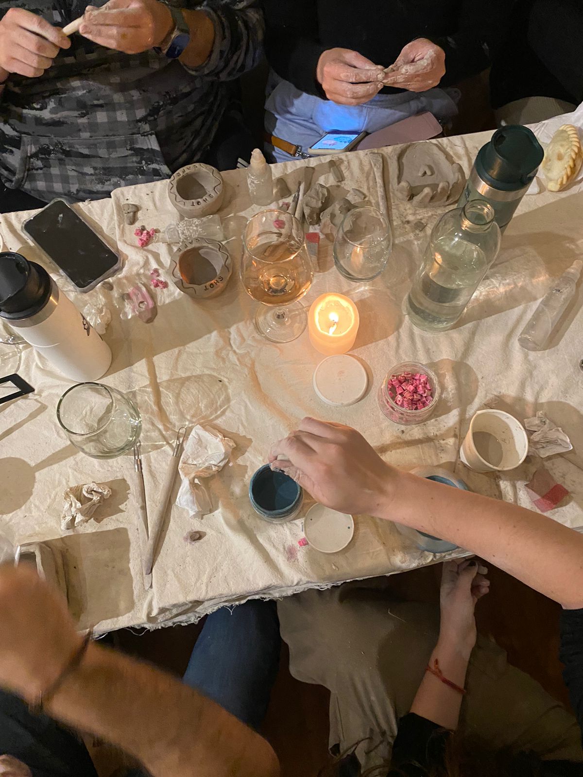 “La gente está muy contenta porque es un ambiente íntimo y cálido en donde se puede relajar y desconectar del celular, conectar con otras personas, hacer algo con las manos y jugar a ser artista por un día. Se genera algo muy lindo porque la mayoría de los que van nunca hicieron cerámica antes, entonces el primer acercamiento y la primera creación siempre es algo que se recuerda con amor”.