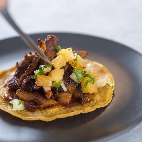 Si bien Ulúa no es una taquería y cuenta con un menú de diez platos que exploran la riqueza y diversidad de la gastronomía mexicana, sí cuentan con dos tacos en su itinerario. Uno es el taco al pastor, de carne de cerdo marinada en achiote, chiles, ananá, cebolla y ajo que se sirve con cebolla picada, cilantro y más ananá, sobre una tortilla de maíz. El otro es un taco ensenada que tiene como base una tortilla de trigo sobre la que se colocan langostinos apanados, coleslaw, mayonesa de chipotle y pico de gallo. La mayoría del menú tiene picante, pero se nivela para que sea apto para el paladar local.