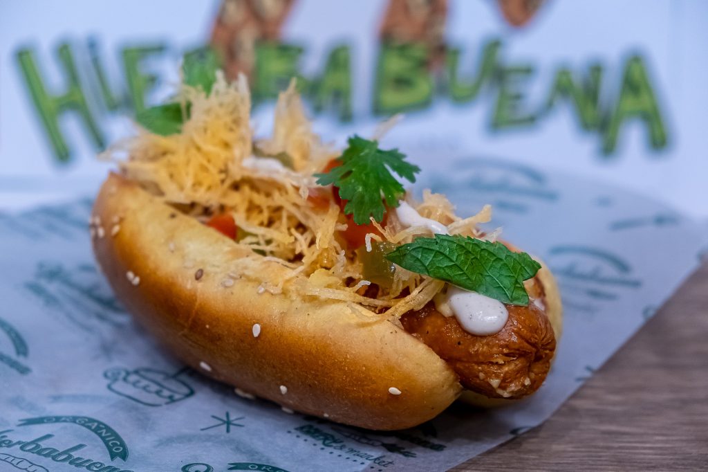 En octubre del 2020, en medio del boom de la cocina orgánica y consciente, nació Hierbabuena, una de las primeras hamburgueserías 100% plant based de Buenos Aires. Pero este tipo de gastronomía no es algo nuevo para Diego Sicoli, el chef y propietario del local, que desde hace once años viene dedicándose a este mundo sano y a base de plantas a través de Hierbabuena Restaurante, su primogénito. Con la apertura de la hamburguesería del mismo nombre evoluciona su propuesta para ser completamente libre de productos de origen animal y llevarla a la comida rápida. En Hierbabuena Vegan, ubicada en el boulevard Caseros del pintoresco barrio de San Telmo, la filosofía del espacio es clara: “la vida es buena, lo bueno es verde”.