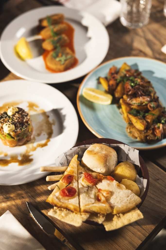 Si vas en plan picoteo, sí o sí la super tabla de antipasto: jamón crudo, bocconcini, gruyere, tomates secos, spianata, morrón, alcaucil, oliva ascolana y mortadela con pistacho. En cambio, para los que van por un menú de pasos a precio vero amico: El Parolacho está vigente todos los días mediodía y noche y trae de todo. Copa de bienvenida (¡nos encantó en Ramazzoti Spritz!), un agua por persona, un vino D.V. Catena cada dos, café y limoncello casero. De entrada, rabas e zucchine fritte o burrata con prosciutto; de principal sorrentinos Gran Carusso gratinados o fettuccine funghi e óleo de trufa o el abadejo a la siciliana con espárragos a la parmesana. De postre, tiramisú al mascarpone ($ 45.000).