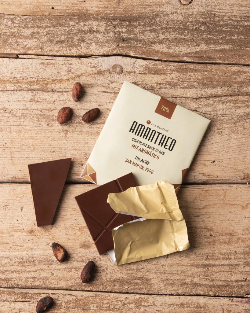 Hay desde Amanthe 80% Quellouno de Cuzco, Perú hasta uno de Amazonas, Perú 70%. Y asegura que realizan muchísimo trabajo previo antes de importar la materia prima: “primero visitamos los cocotales, las fincas y los centros de post cosecha, nos involucramos en los procesos para saber muy bien la historia de nuestros futuros productos, manteniendo así los principios que sostenemos como empresa. Trabajamos directo con productores o Cooperativas”. Traen granos de varias zonas de Perú, Ecuador, Colombia y Brasil, entre otros.