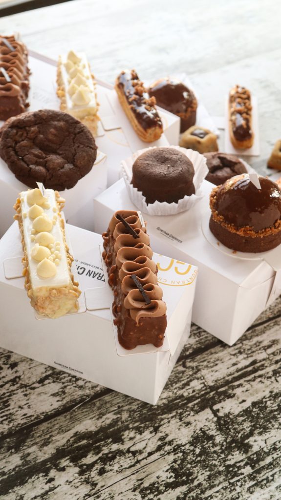 Gontran Cherrier, en su pintoresca esquina en pleno Palermo Soho, también tiene propuestas para los amantes del chocolate. Las que más salen son los eclairs y el lingote de chocolate. Pero no se queda atrás, la caja especial “amour pour le chocolat». “Pensamos en crear una propuesta que tenga un ingrediente que tanto gusta como es el chocolate, y que esté presente en productos que elaboramos con todo tipo de variedades y texturas. La caja tiene opciones de viennoiserie y de patisserie. Están presentes en los productos, el chocolate blanco, el semi amargo y el chocolate con leche. Hay variedad para todos los gustos”, dice Carolina Gottwald, chef de Gontran Cherrier.
