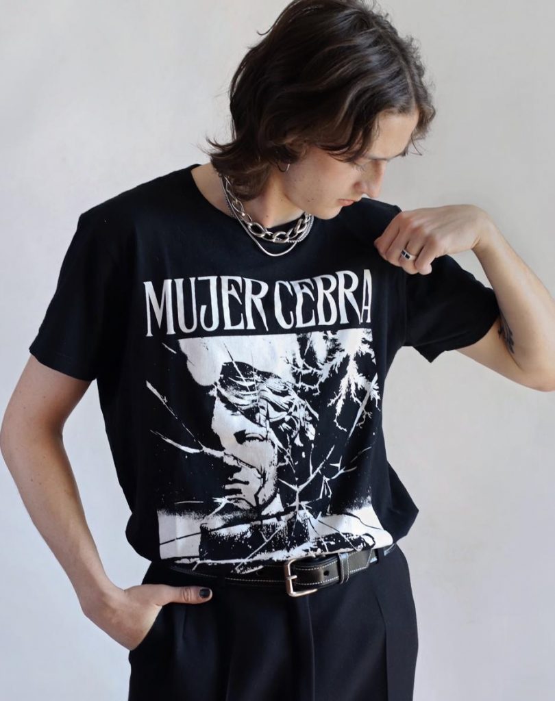 En noviembre del año pasado, en uno de los tantos shows que brindó Mujer Cebra en Buenos Aires dije “hay algo ahí”. No me refería a la música, que por supuesto me parece por demás interesante, me sorprendió la cantidad de personas que llevaban puesta la remera de la banda, creada por el ilustrador y diseñador Santiago Moscardi, quien se caracteriza por trabajar con diseños pregnantes, simples y con pocos colores, con el objetivo de mantener un precio accesible a la hora de imprimir en serigrafía.