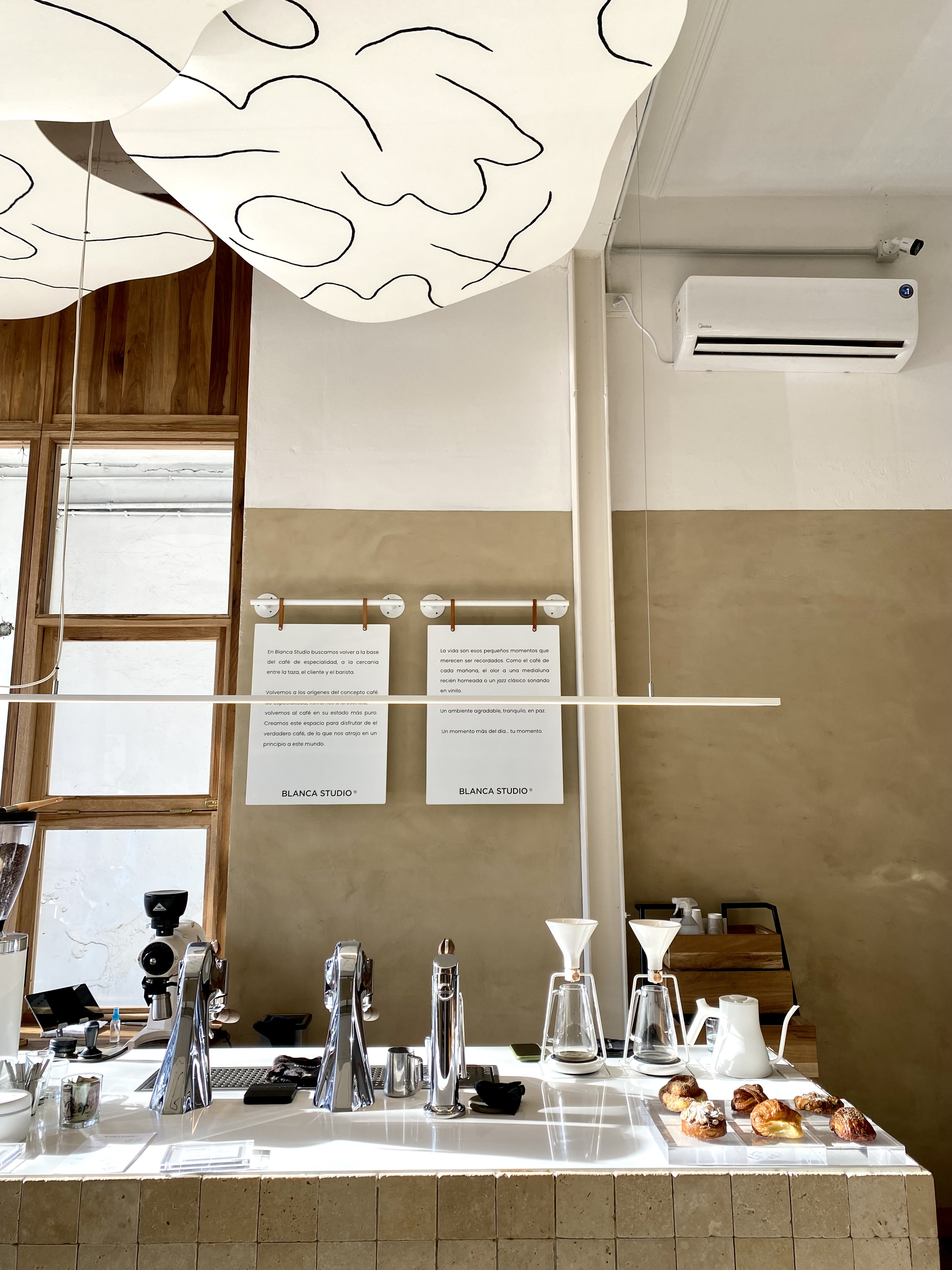 Gina es la cafetera estrella de Blanca Studio, que acompaña la estética impecable del local.