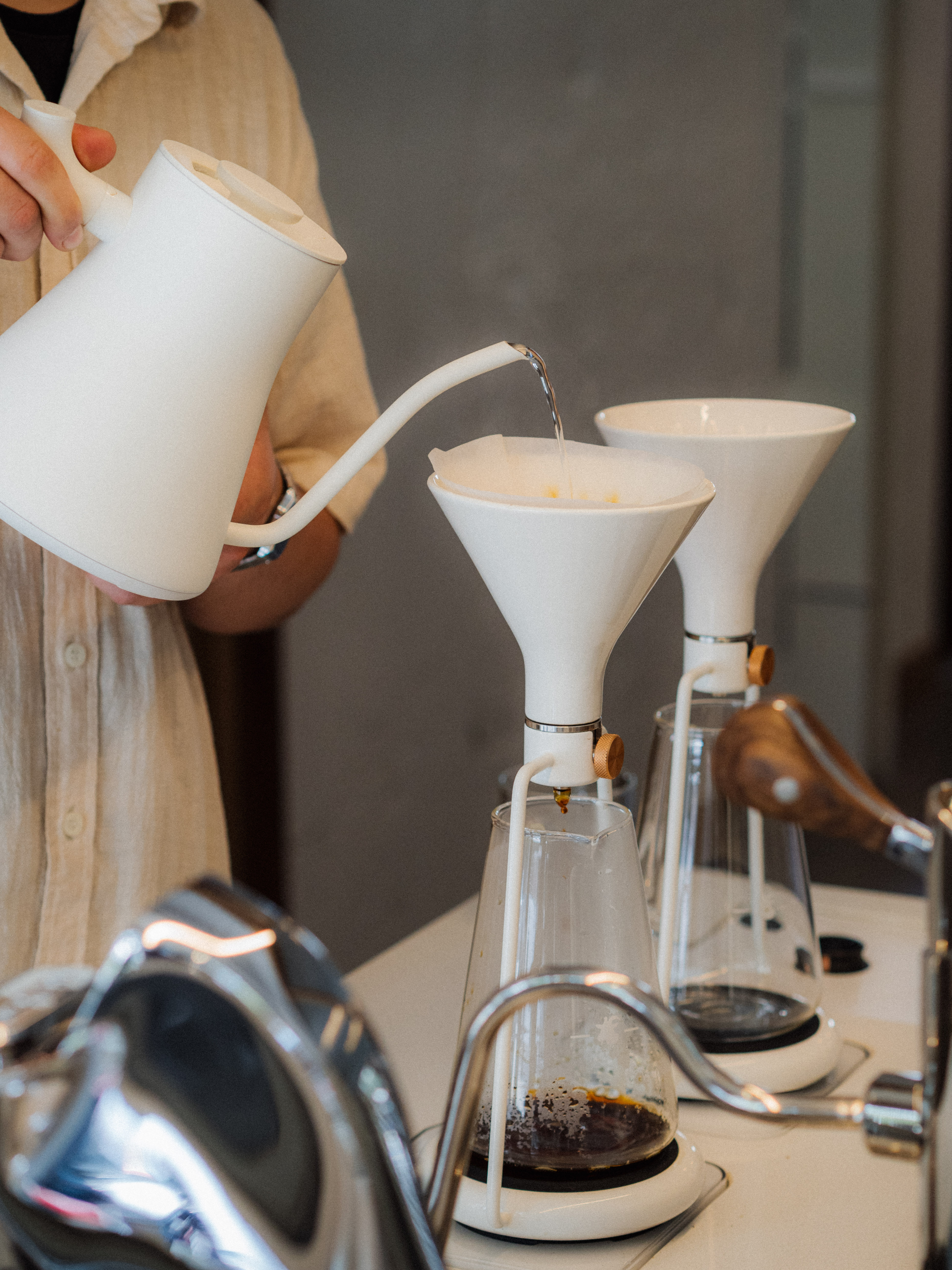 A los menús donde ya nos acostumbramos a leer “latte”, “capuccino” y “flat white” se les sumó en este último tiempo un nuevo renglón: los “filtrados”. Si les prestamos atención a las cafeterías, en muchas empezamos a ver unas piezas de vidrio como de laboratorio sobre la barra. Quizás varios traigan a su cabeza la Chemex, esa cafetera estética que se parece a un decanter de vino con agarre de madera (tan linda que hasta forma parte de la colección del MoMA). Pero, si afilan la mirada, al lado aparecieron jarritas con embudos y otras formas extrañas que, les adelanto, también sirven para hacer café.