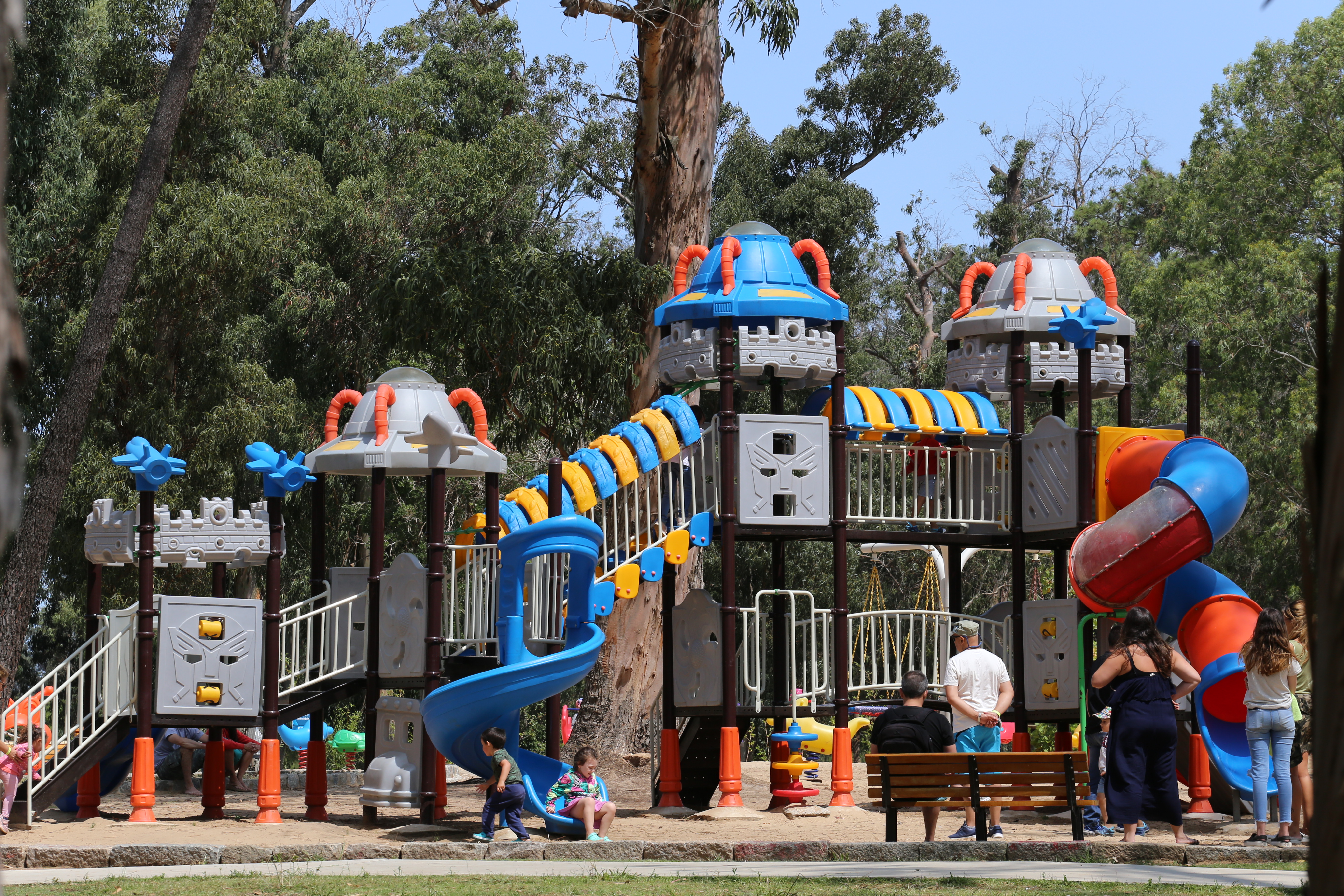Las últimas vacaciones de invierno mis hermanos insistieron en volver al Jagüel, el parque temático al que íbamos mucho de chicos y que estuvo abandonado por casi 10 años hasta su reapertura hace unos dos. Yo, un poco escéptica, tenía miedo de deprimirme porque se me pinchara el recuerdo mágico que tenía de sus enormes figuras en fibra de vidrio inmersas en el bosque. Pensé que sería una pavada para niños, una plaza más. Me sorprendí para muy bien cuando llegamos y descubrimos un parque enorme dividido por plazas de juegos por edades para niños desde bebés hasta mayores de 6. La entrada es gratis ya que se trata de un parque Municipal y está pensado para pasar el día con espacio para picnic y parrilleros en el bosque. Juegos supersónicos y desafiantes, de escalada y toboganes altísimos. También juegos con sonido, interactivos e inclusivos. Y, por sobre todo, me alegró mucho ver que las enormes jirafas de fibra de vidrio aún estaban allí… Y el oso y el perro salchicha también.