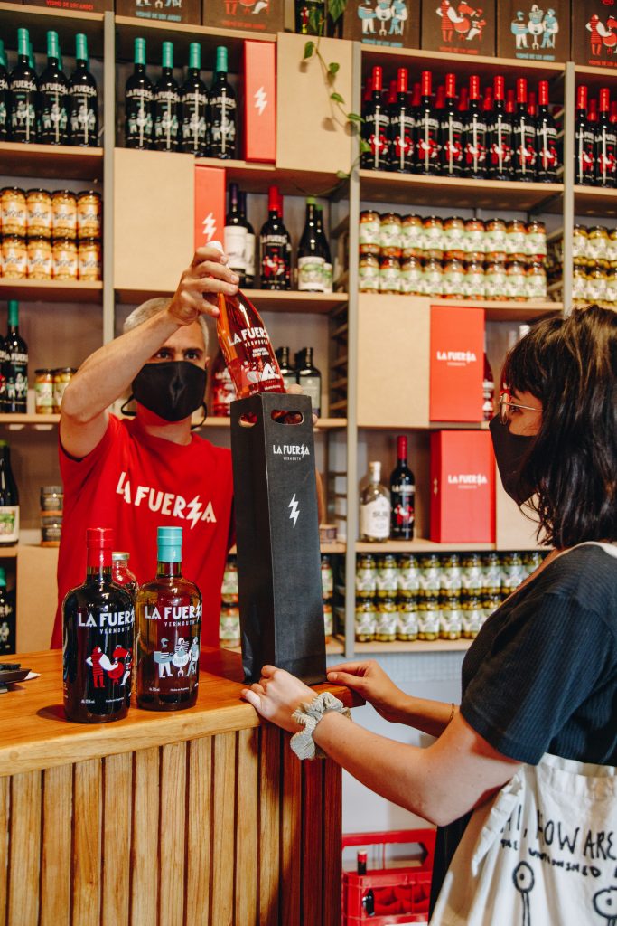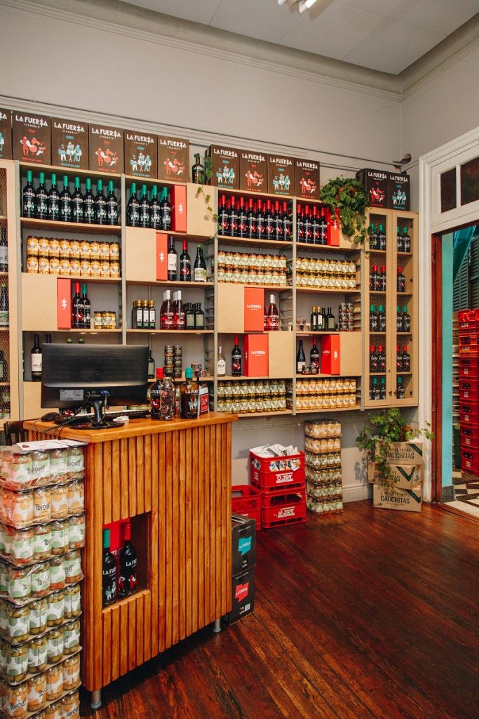 El bar lo crearon un grupo de amigos amantes del vermut, cuyo espíritu combina esa bebida con platos con buenos ingredientes e identidad local, para comer o picotear desde la tarde hasta la noche. Desde que los socios crearon La Fuerza siempre estuvo latente la idea de crear un almacén. “En principio, porque el primer lugar donde comprar la botella de La Fuerza fue el bar, y queríamos que tenga un espacio. Luego, porque valoramos los productos y proyectos con los que trabajamos en el bar y que se fueron sumando al almacén online. Faltaba generar un espacio donde la gente pudiera encontrar todo eso”, relata Martin Auzmendi, socio. Así surgió finalmente el almacén, como un lugar para recibir a las personas que van allí a comprar un vermú, a llevarse alguno de sus productos o simplemente a recargar su botella.