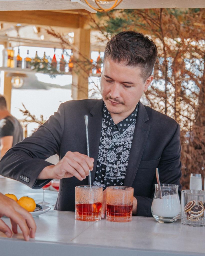 Es el tercer año que Sebastián García se encarga de la coctelería de la barra de Nómade donde te podés tomar desde un Negroni, un Gin Tonic o un Old Fashion hasta cócteles frozen. “La clave es que usamos productos de estación: muchas frutas y jugos. Un 70% del menú es a base de frutas y de graduaciones alcohólicas que no son tan altas”, dice Seba que además de ser uno de los cien personajes más influyentes del mundo según Bar World 100, es también socio del parador. “Lo que se busca es educar al consumidor sobre lo importante de una buena alimentación e hidratación”.