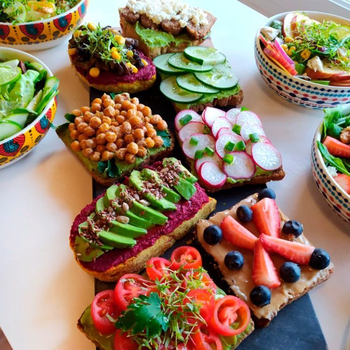 Alma Serena es una tienda holística donde se puede desayunar, almorzar y brunchear (merendar-cenar) veggie y vegan: desde bruschettas, sopa paraguaya, pizzas (hay una dulce que tiene sandia, frutillas, crema, arándanos y semillas de amapola), ensaladas con frutas y hamburguesas hasta bowls tropicales y pastelería gluten free.