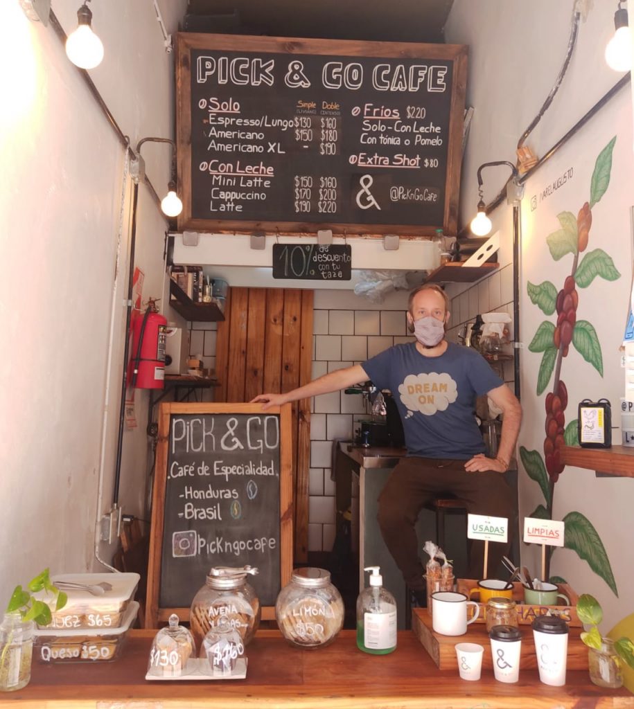 Pick and go es un infalible de San Telmo desde 2016, sin embargo hace poco Charlie, tostador de Café Z (ahora proveedor del local), se lo heredó a su sobrino Tomás. “La idea es que Pick sea una representación fiel del barrio. Incorporé unas galletas saladas y unos muffins que varío cada semana. También agregué la opción de leche vegetal, que la preparo en el local, y hacemos descuento a quienes traigan su taza, para colaborar con el material descartable y el bolsillo”, cuenta Tomás.