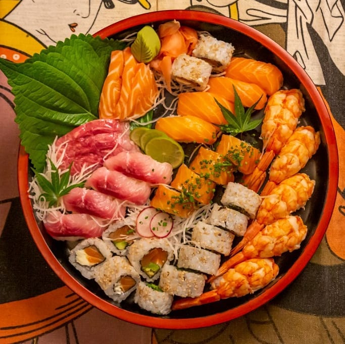 La primera opción incluye una picada oriental (vegbao, onigiri, gyozas y harumaki) como entrada, un plato principal con más de veinte piezas surtidas de sushi y de postre dos mousse, de matcha y de maracuyá. Para acompañar, dos infusiones de té verde con jazmín.