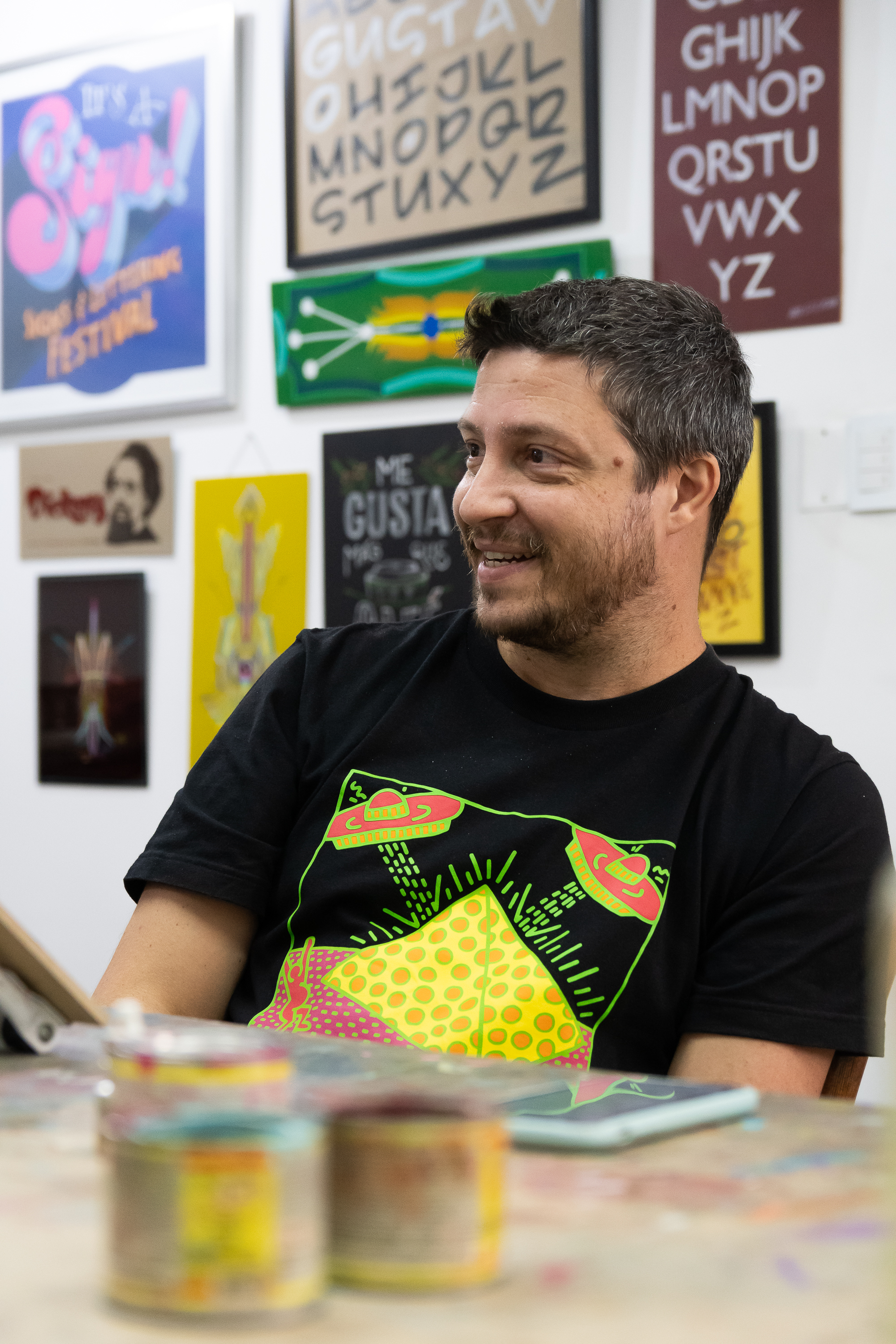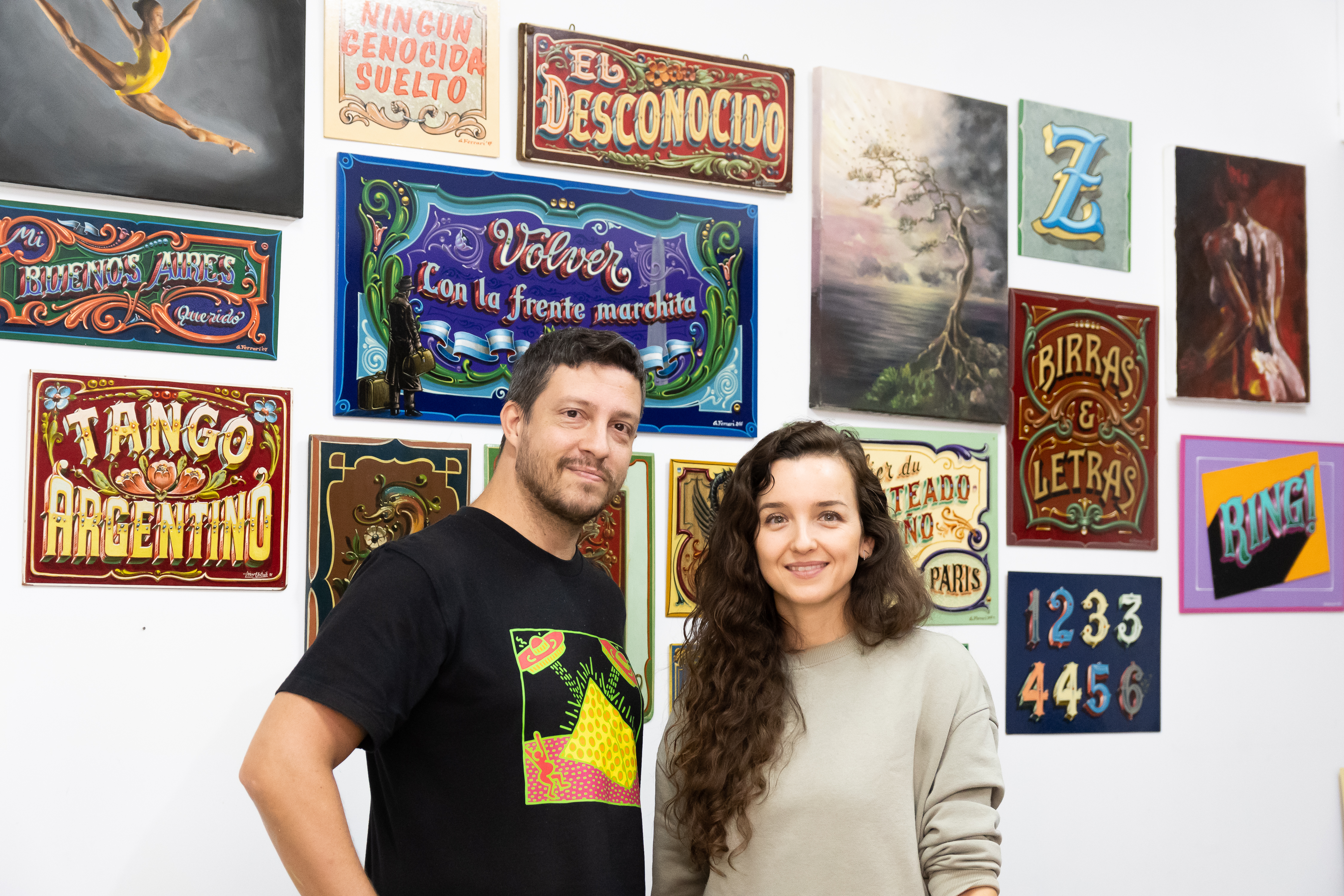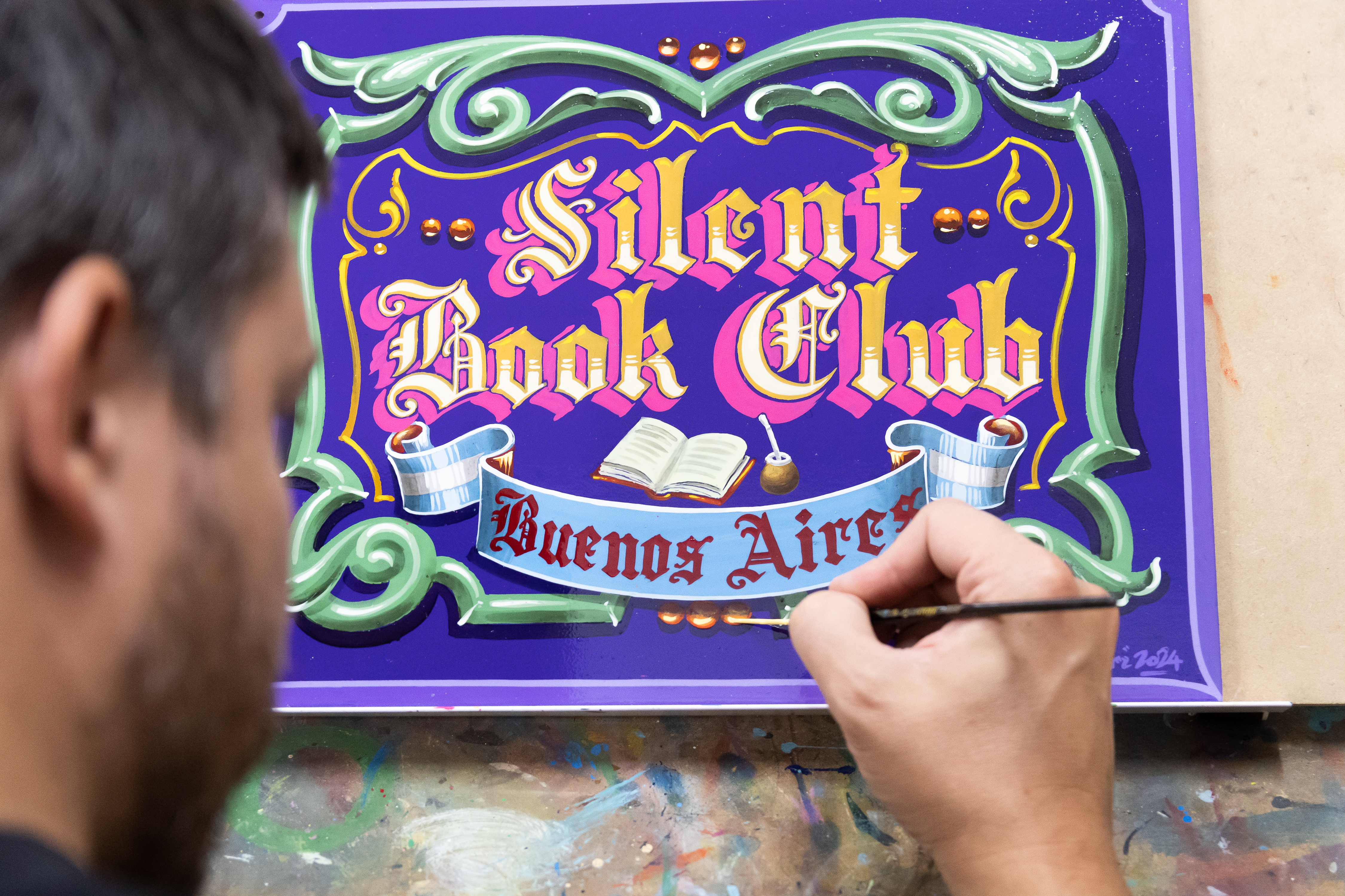 Letras, frases ingeniosas – un «qué mirá bobo» -, firuletes y muchos colores: más de 50 carteles de fileteado y lettering decoran las paredes de su hipnótico taller en Caballito/Gin tonics de por medio, hablamos de este arte que nos define a los argentinos en el mundo «casi tanto como el tango»/¿Cómo innovar cuando sos guardián de una tradición?/Bonus: las obras más inusuales que le encargaron.