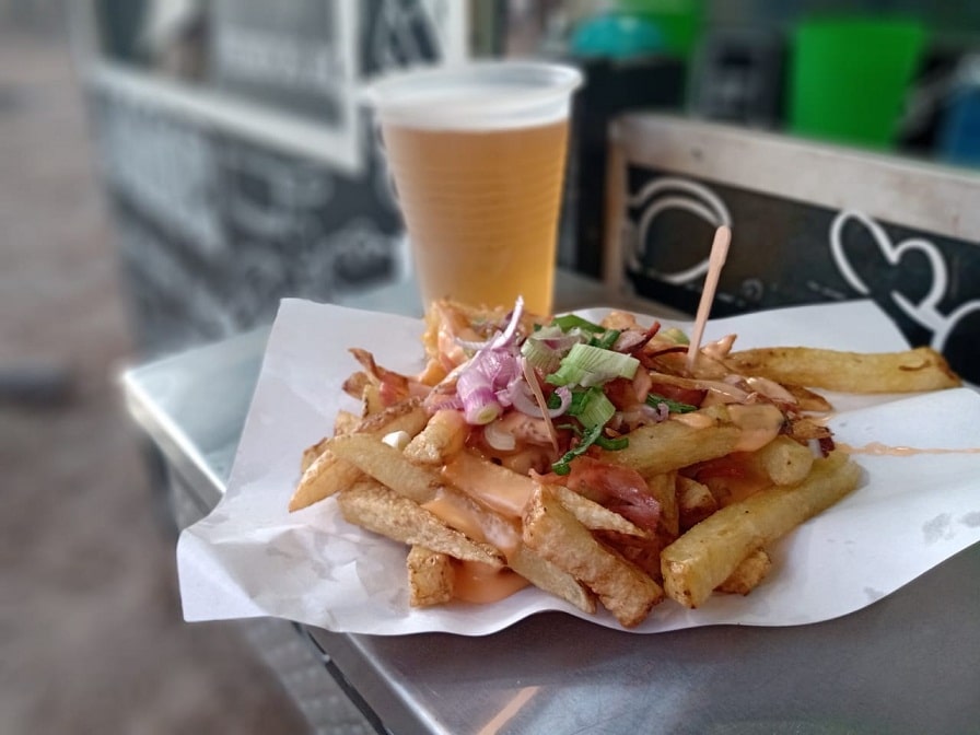 2) “Papas Cuña”, con cheddar, panceta y verdeo. Un hit en Pinamar Norte este verano.