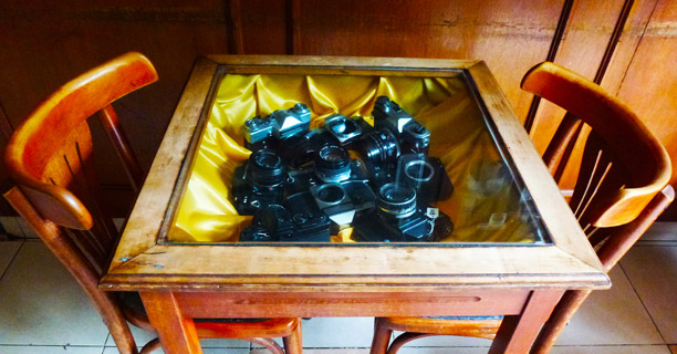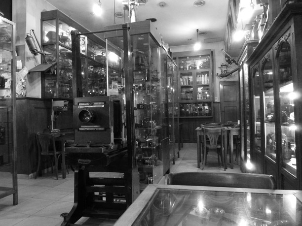 Hoy caminar por el bar es atravesar la historia de la fotografía. Hay vitrinas con daguerrotipos en excelente estado, cámaras de madera de distintos tamaños, estereoscópicas con imágenes en 3D, entre muchas otras curiosidades. Y lo más llamativo es que todas funcionan y se practica con ellas en los cursos que ofrece el museo. En fin, todas viven (o sobreviven) a pesar de que el avance de la fotografía digital se empecine en enterrar a las cámaras analógicas.