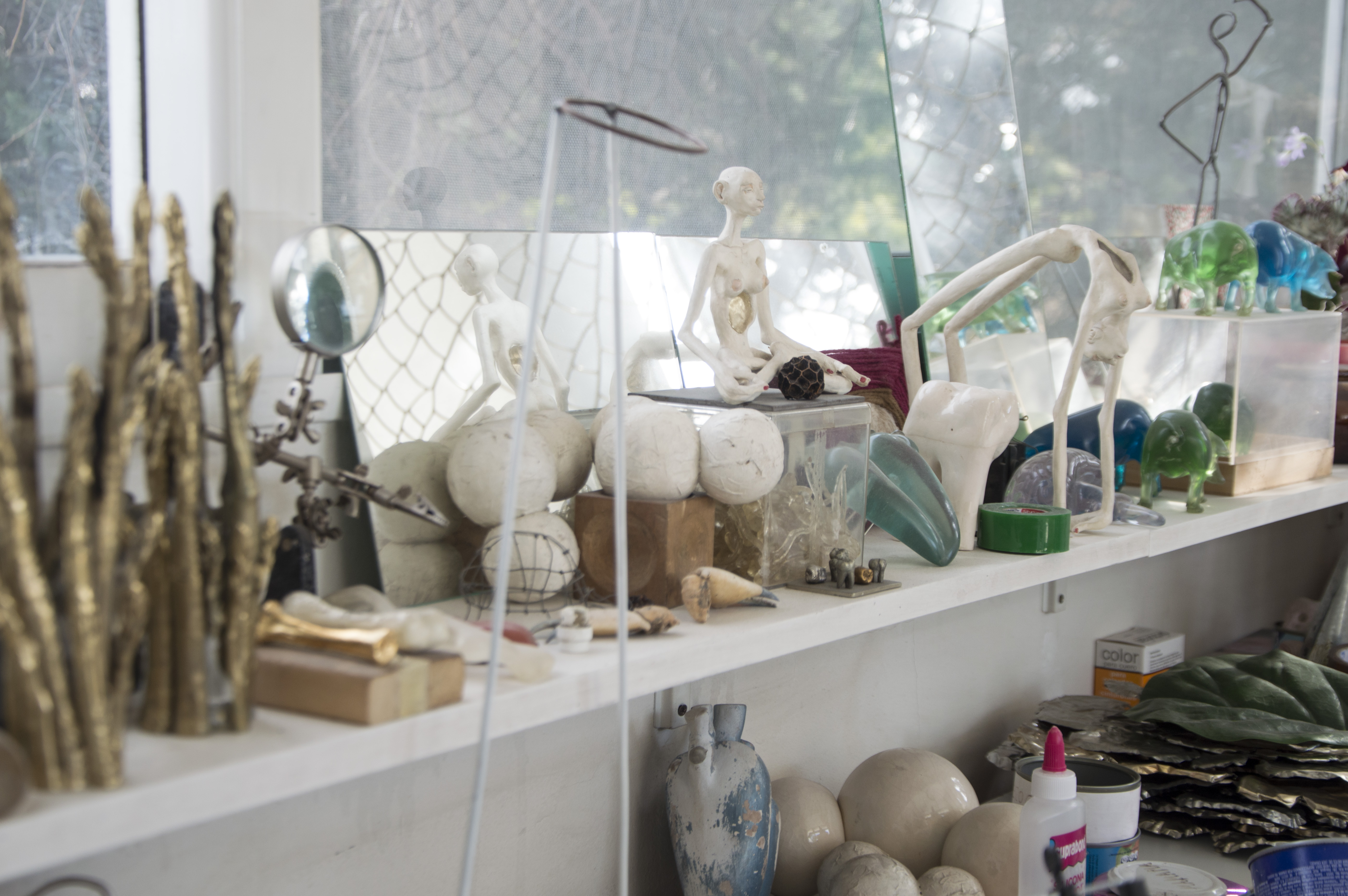 Pasar la mirada por el taller es descubrir esas pequeñas muestras, ensayos y errores. Ya que este está repleto de objetos. “Es lo que tiene el taller —nos confió Celina mientras esparcía una caja de caracoles sobre la mesa buscando unos corales que Marina necesitaba llevar al taller de joyería—, es el universo más íntimo de nuestra creación.”