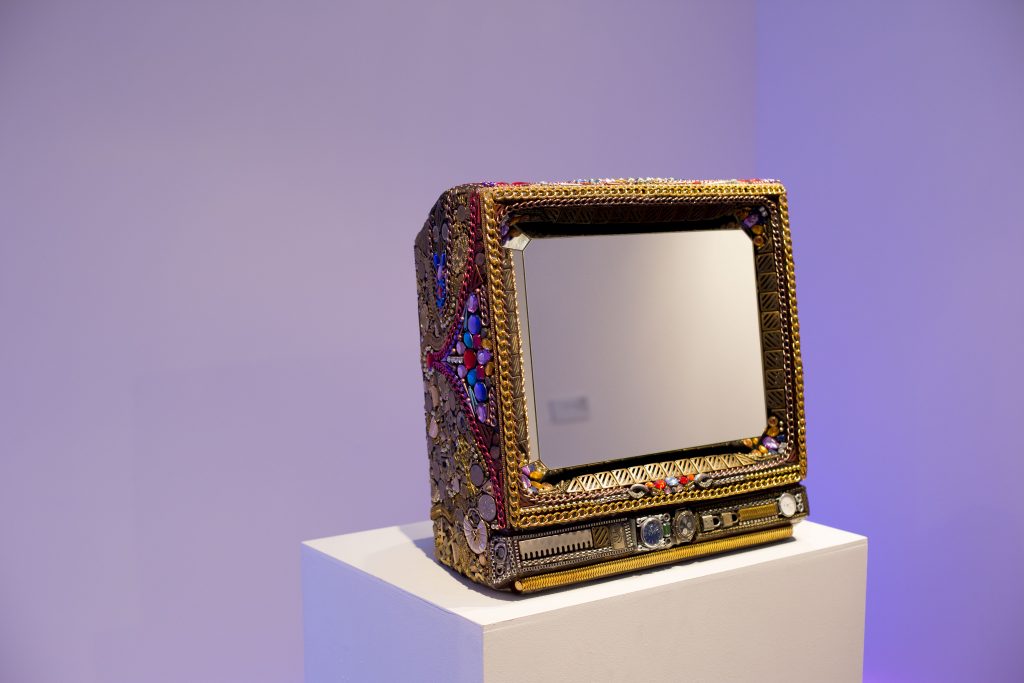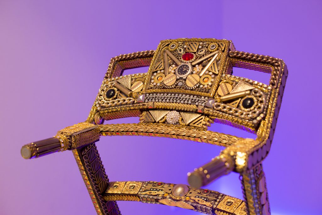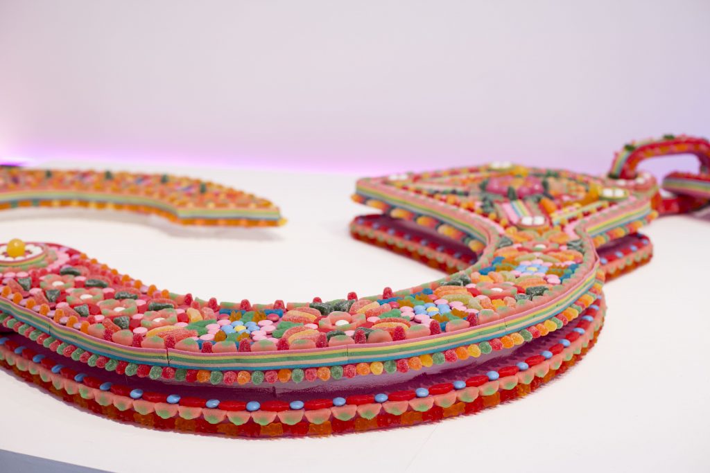 Todo lo que se ve en la muestra son donaciones. La gente me dona materiales que encuentra en la casa, desde envases de shampoo y cajitas de chicles, hasta elementos tecnológicos. Las golosinas que se ven en una de estas obras, por ejemplo, están vencidas y me las donó un mayorista. Todos los metales provienen de un chatarrero que queda a dos cuadras de mi taller, en Madrid.