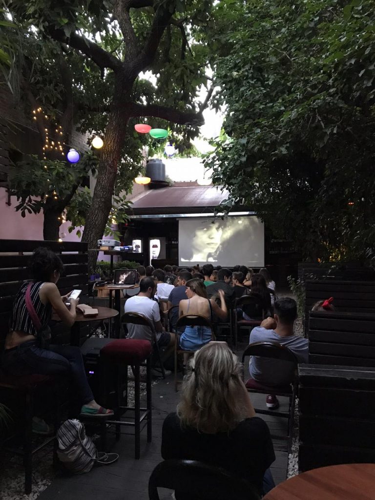 Elegís una película (generalmente de los 70 a los 2000), reservás tu entrada a través de la web, te sentás en medio de un jardincito palermitano, comés una tortilla o pizza al horno de barro y lo acompañas con un Cynar Julpe.