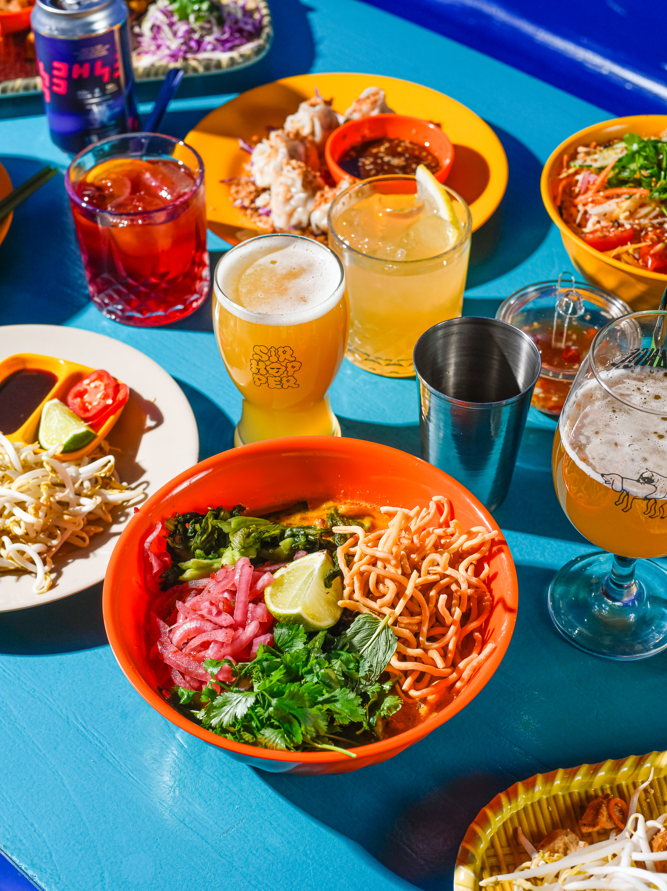 Para el Khao Soi utilizan una mezcla de curry en polvo y curry en pasta, leche de coco, pollo pastoril, salsa de soja y especias traídas de Vietnam. El emplatado se compone de dicho curry con fideos al huevo y toppings: cebolla roja encurtida, pickles de hojas de mostaza asiática, verdeo, fideos fritos (algo tradicional del plato) y un mix de hierbas como menta, eneldo y cilantro. Se puede acompañar con una cerveza light lager tirada, hecha en colaboración con Lumpen.
