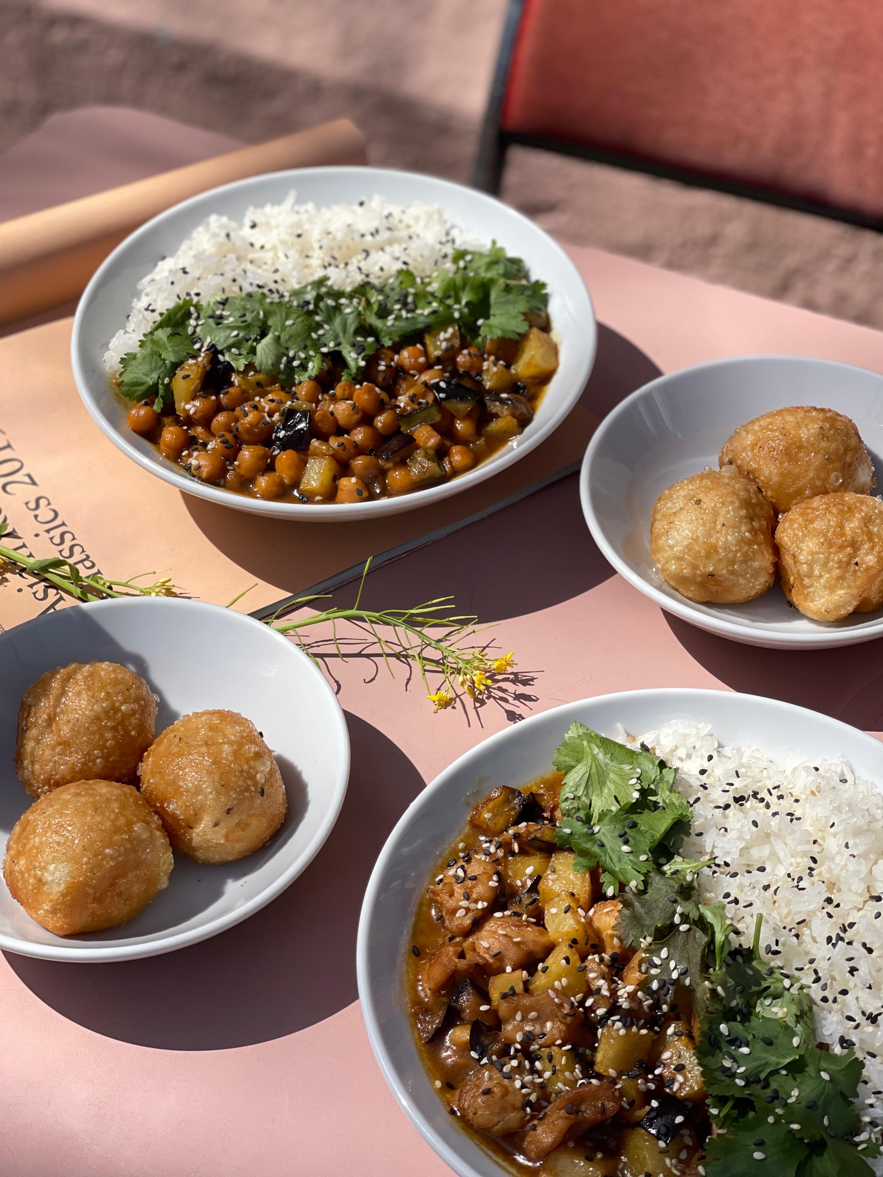 «En la carta tienen 3 currys deliciosos: un “Kocurry” –un plato vegano especiado a base de leche de coco, con garbanzos, berenjena y papa que sale con arroz y mini-pancitos hechos con pan de bao fritos–, un curry de pollo –que tiene la misma base que el vegano pero con pedacitos de pollo– y (lo que considero LA joyita) un curry indonesio que se llama “Rendang”…»