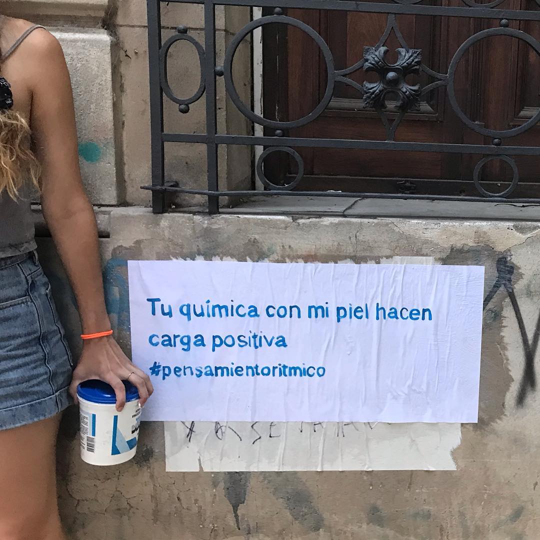 Pensamiento Rítmico (@pensamientoritmico) sigue la misma línea. No se sabe quién está del otro lado de este movimiento de intervenciones urbanas pintadas a mano, tattoos vintage y música del 2000. “Divagando y conversando, salió la idea de empapelar la ciudad de música”, cuenta su creadora. Y así fue como hoy este proyecto – con más de 10 mil adeptos – llenó Buenos Aires de homenajes musicales. Ella lo lleva a tal nivel que se tapa la cara con stickers en las historias de Instagram. ¿Por qué? ¨Primero porque me parece mucho más interesante una cuenta cuyo objetivo sea homenajear a los artistas y no ser un ego andante. Me parece que el concepto de pensamiento es un homenaje a los artistas en la calle y como DJ pasando música súper nostálgica. Y mi cara no tiene nada que ver en ese homenaje. Me parece súper egocéntrico mostrarme a mí con el objetivo de homenajear. Por otro lado, no mostrar mi cara genera cierto misterio que está bueno. No importa quién está sino qué hay. ¿Quién será? ¿Es chica? ¿Es chico? ¿Son muchos? Mucha gente se aproxima a mí como varón y es como: ojo que acá hay una piba detrás de un proyecto callejero. Me parece interesante.¨