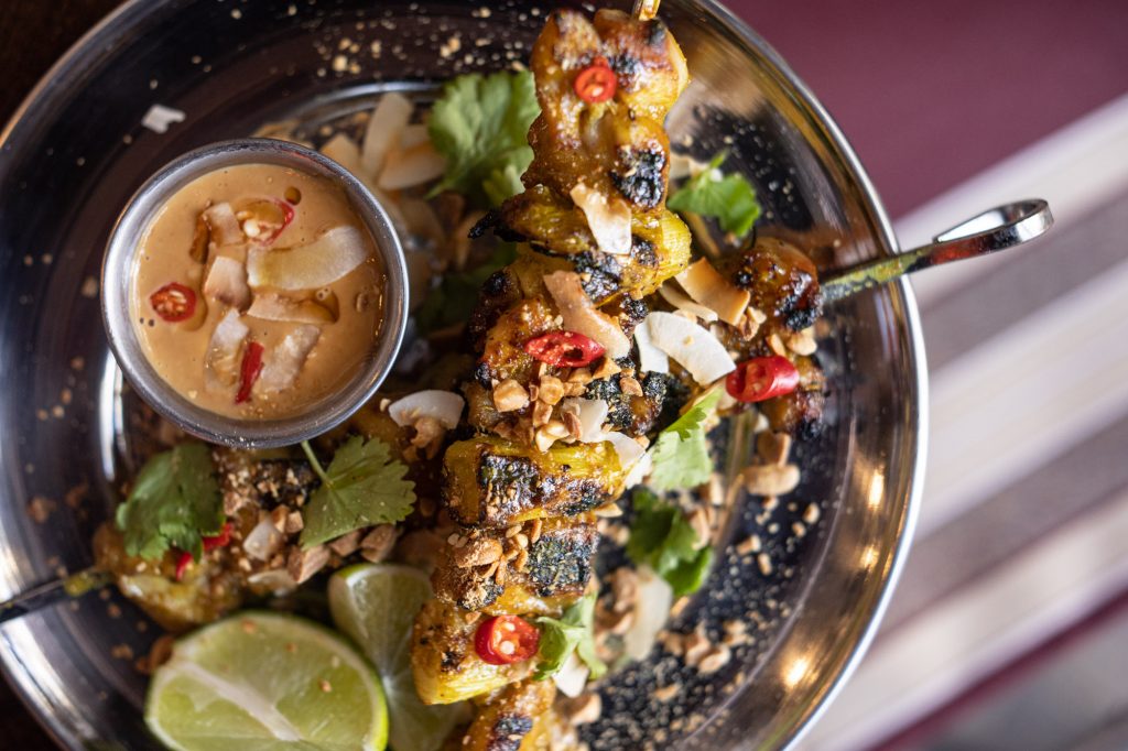Lo hay con el chao thom, un plato tradicional que se suele preparar para eventos especiales y festejos. “Mientras la versión típica lleva un preparado de langostinos y cerdo que se pincha en un palo de caña de azúcar o un tallo de lemongrass y se cocina a la parrilla pintándose con barbacoa especial con soja y jengibre, el nuestro se marina con lima, lemongrass y jengibre y caramelizamos los pinchos de caña de azúcar con salsa de soja dulce”, detalla Luca Rodríguez, jefe de cocina.