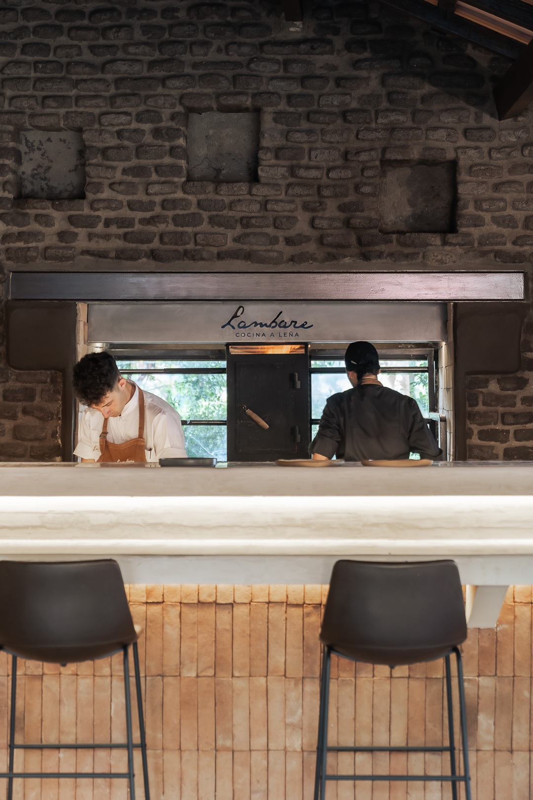 Lambaré está en un entorno único, rodeado de naturaleza y con una arquitectura que cuenta su propia historia. Antes de ser un restaurante, el espacio era una antigua capilla de adobe, que se respetó y restauró para mantener su esencia. Una de las características más especiales es su pared original con nichos donde antes se colocaban vírgenes y santos, un detalle que hoy sigue presente y le da un carácter único al lugar. Para el nombre, usaron el nombre original que llevó el hotel en sus inicios, hace más de 100 años.