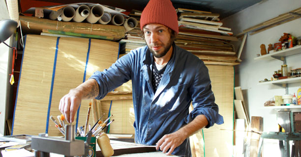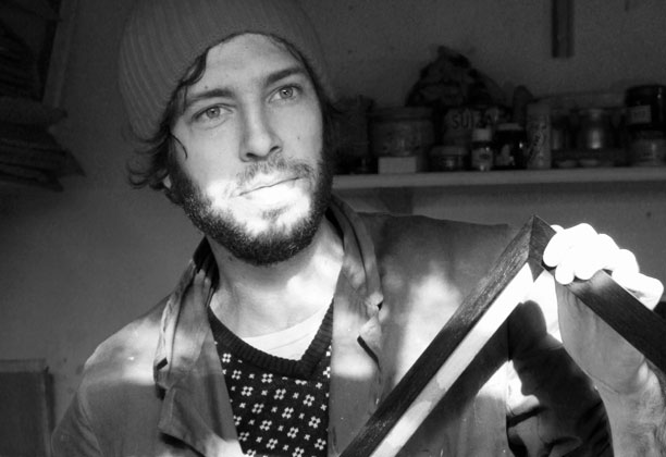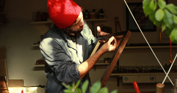 “El marco es la piel de la obra o es como que a una mujer bella, la vistas bien”. Así define el calibre de su oficio Cristián Dellarole (30), al frente del taller de enmarcado Bon Buá, que trabaja sobre todo con artistas jóvenes y galerías que también pisan fuerte en un circuito de arte joven y con propuestas rupturistas, más de vanguardia, no mainstream, tales como Rea One Day Gallery, Fiebre o Blanco, entre otras. El marco justo – la madera exacta, el color apropiado, el estilo correcto – puede potenciar la obra y ser su banderín de llegada con aplausos. Uno equivocado puede desvirtuarla y estropearla. Por eso la etapa del enmarcado es crucial y el trabajo de quien se encarga conlleva tanta responsabilidad. Además de que el marco no sólo aporta a la armonía estética sino también a la conservación. A días de su dead line para arteBA y en medio de un trabajo bastante frenético con su cortadora a la que bautizó “María Antonieta” (porque es una suerte de mini guillotina), Dellarole recibió a Maleva en Bon Buá, en un estupendo pasaje colonial en las orillas del China Town de Belgrano. Explicó de qué se trata enmarcar y cuál es, además de la técnica, la filosofía que hay detrás y cómo es hacerse cargo de las criaturas de los artistas.