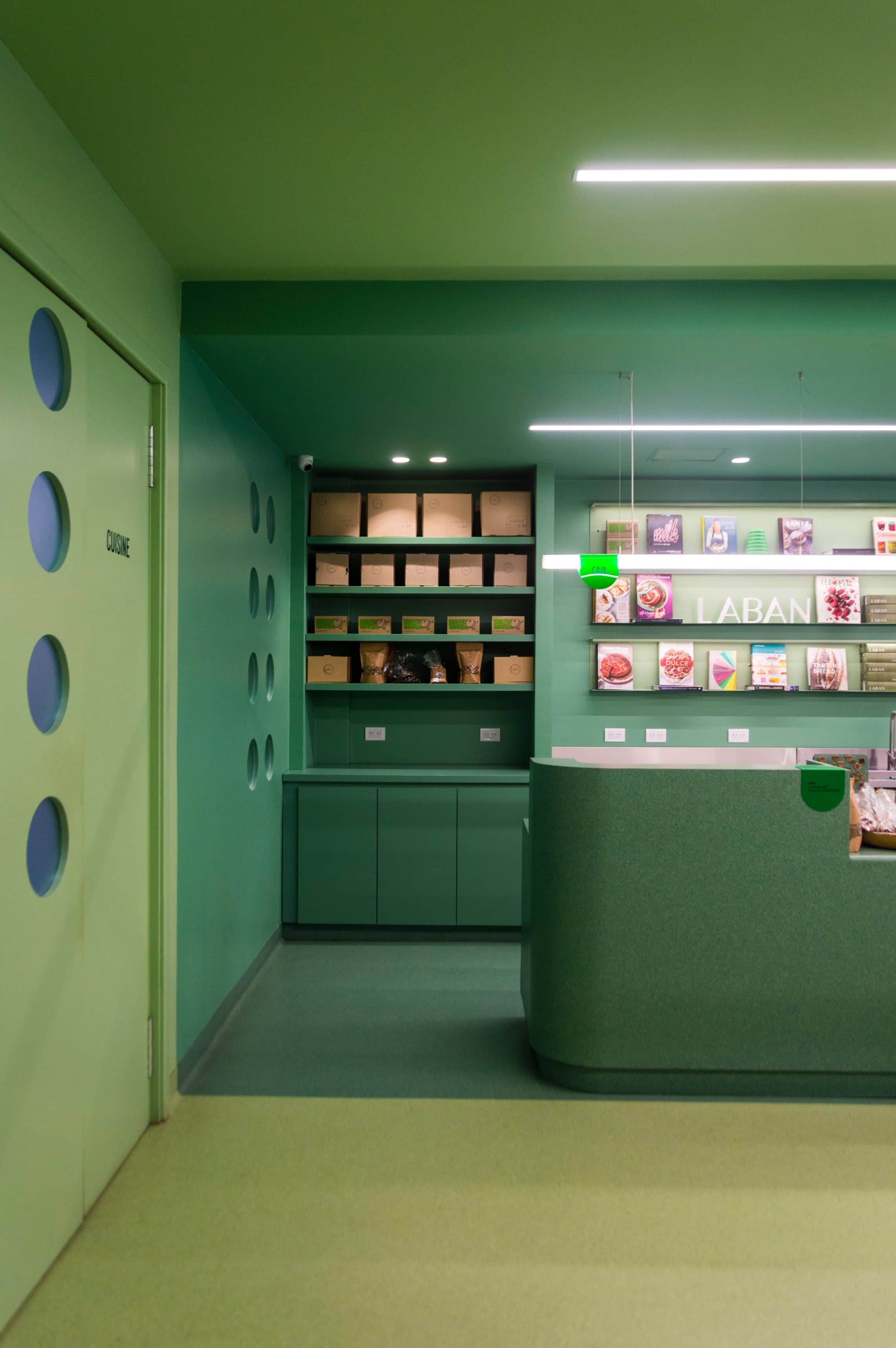 “Este espacio, Labán, que es un proyecto con 10 años, tenía que contar que Jaqui (la dueña, pastelera y alma máter de la patisserie) es Jaqui más allá de las referencias estilísticas. Creo que palabras como frescura, genuino, descontracturado, contemporáneo ayudaban a ir detrás de la materialidad y la paleta. El verde ya era parte de la marca, la cuestión era cómo transmitir los años de experiencia, de éxito, de fuerza. Y lo conseguimos…”