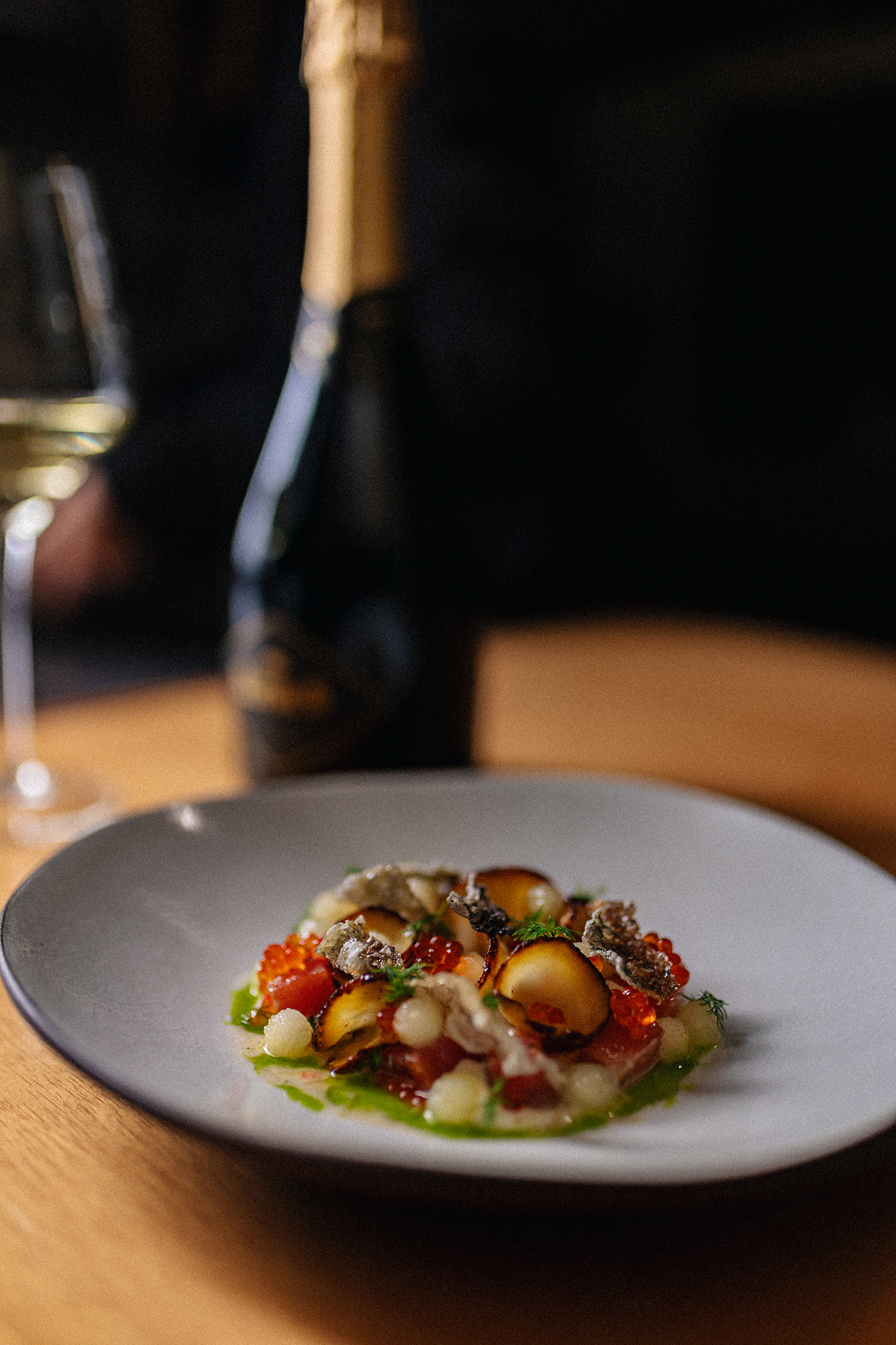 Se trabaja desde la libre interpretación, buscando equilibrio y profundidad en cada plato. Nuestra carta es ecléctica, básicamente porque conseguimos un concepto reuniendo y conciliando cosas que “no se supone” que van juntas.