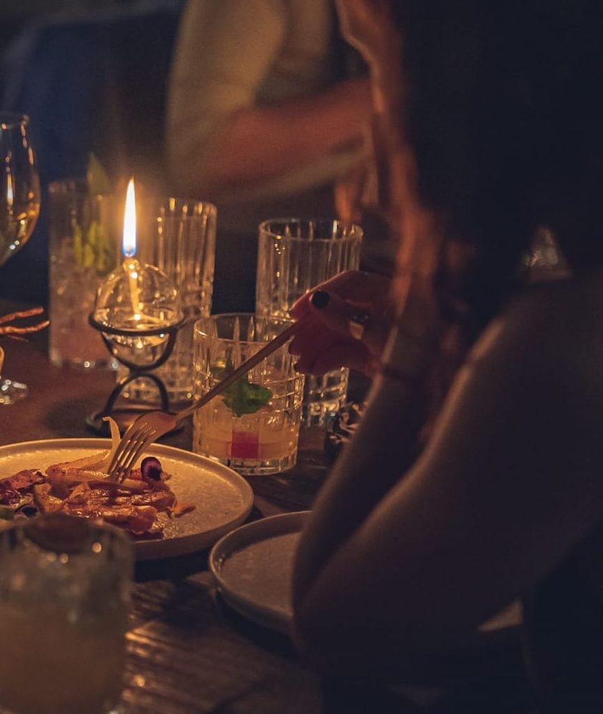 Inquietos, Daniela y Juan quisieron seguir dándole una vuelta a la propuesta y así surgió el Ágape Aprè Ski, el after de los jueves de San Martín de los Andes. Una vez a la semana, el restaurante se transforma. “Hacemos un banquete medio oscuro, como una onda medieval, con madera, con velas, con distintos platitos, desde cordero cortado en rodajes en pan brioche, unos canapés con una base tipo scon con roquefort, y sumamos frutas como manzanas, peras y uvas que le dan ese toque”. Completan la propuesta música electrónica con DJs locales y algún dress code específico para cada semana.