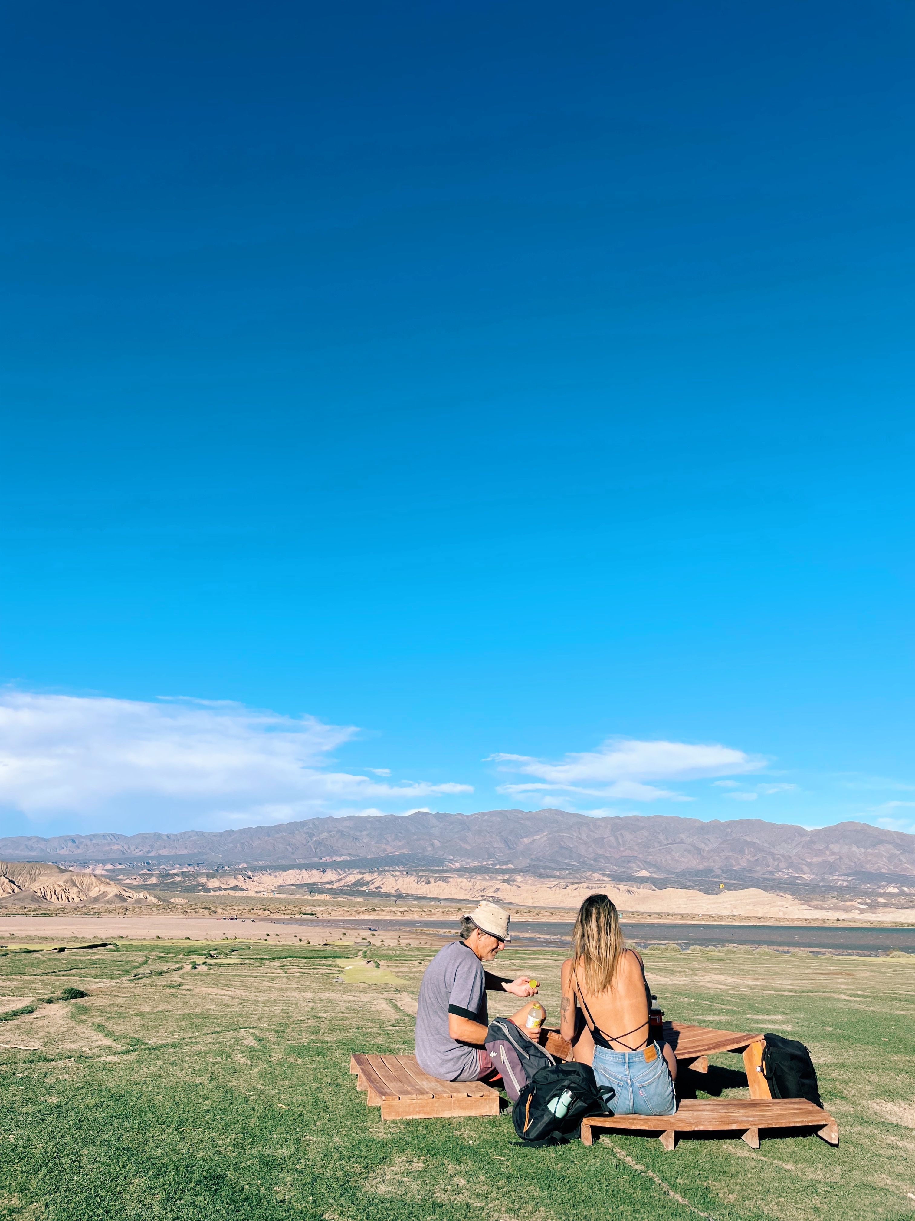 Llegamos a la ciudad de San Juan en avión y nos quedamos ahí la primera noche para arrancar bien temprano a la mañana hacia Rodeo, el pueblo donde está el inmenso dique que se adorna todos los días con kites de todos los colores y tamaños. Fueron dos horas y media de un paisaje montañoso y para acompañar, música al mejor estilo “roadtrip”. Ya empezamos a respirar el aire del lugar – nada de señal y una ráfaga de imágenes naturales que te tenían pegada a la ventana -, los placeres de este tipo de viajes donde la naturaleza es la protagonista indiscutida.