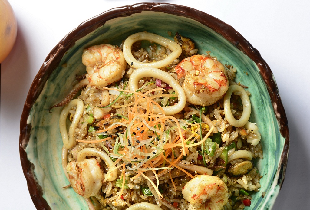 El arroz chaufa es un plato típico de la cultura peruana de estilo “chifa” (fusión de las cocinas peruana y china). Se basa en arroz blanco salteado al wok con salsa de soja, aceite de sésamo, jengibre, ajo, vegetales (morrón y verdeo), tortilla de huevo y una proteína a elección. En la Causa Nikkei lo preparan con langostinos, tentáculos y aros de calamar.