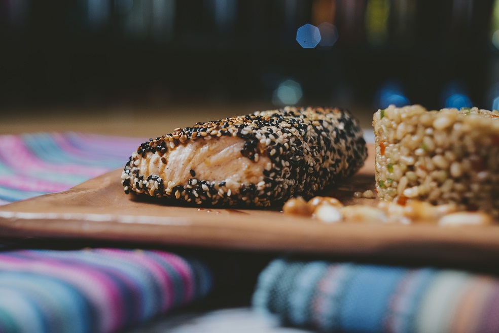 4) SALMÓN TERIYAKI EN COSTRA DE SÉSAMO: DELICADO (PERO EXPLOSIVO)
