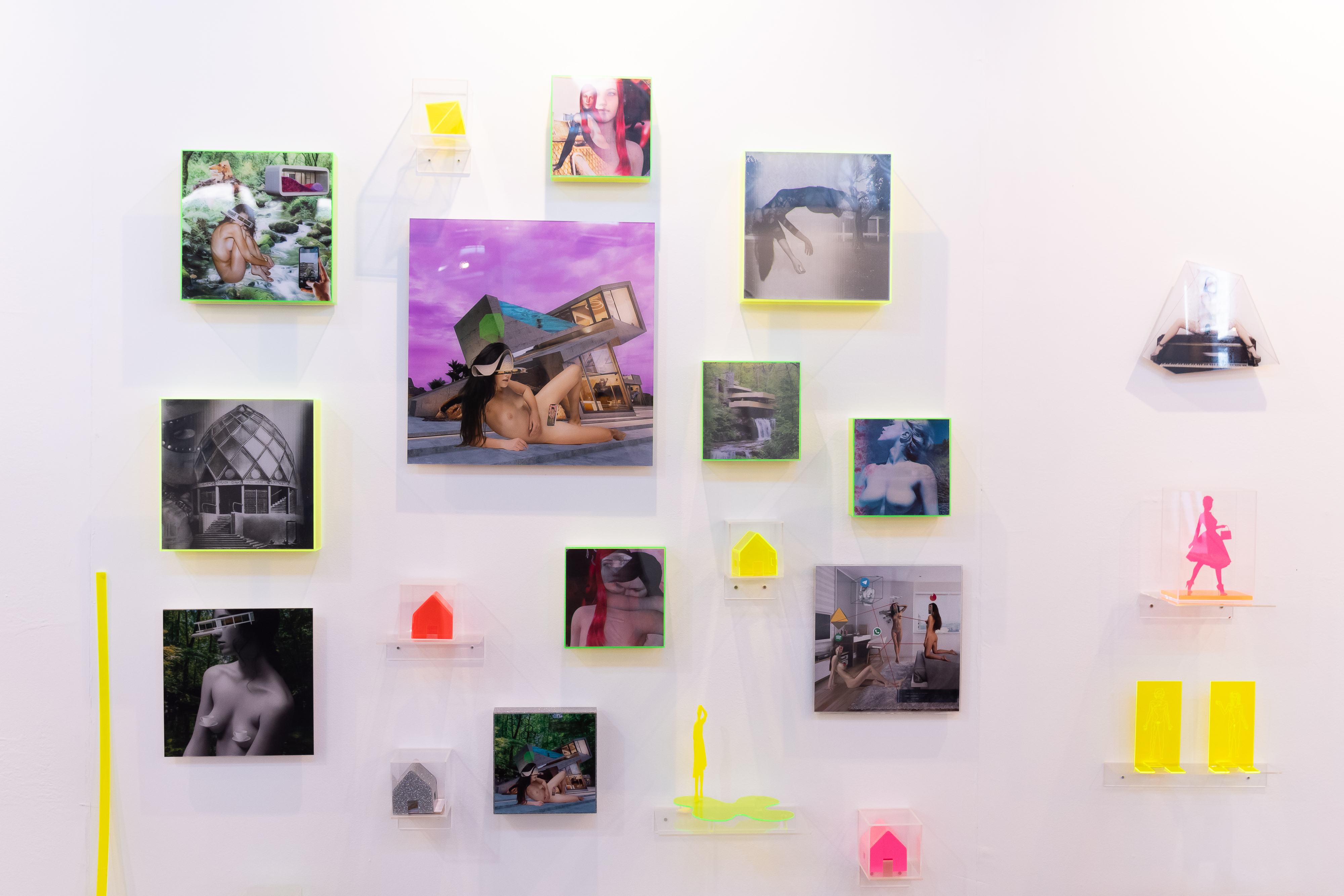 Una serie de cartas de peluche, fotografías con guiños a Andy Warhol, collages analógicos y otros digitales cuelgan de las paredes en Poptitud, la puesta de esta galería porteña. Las materialidades cobran importancia y se destacan; como las mostacillas que encarnan la vestimenta de las odaliscas o el Sultán en El Harem de Kuki Benski, donde el agua es de glitter y en ella nadan patitos de hule.