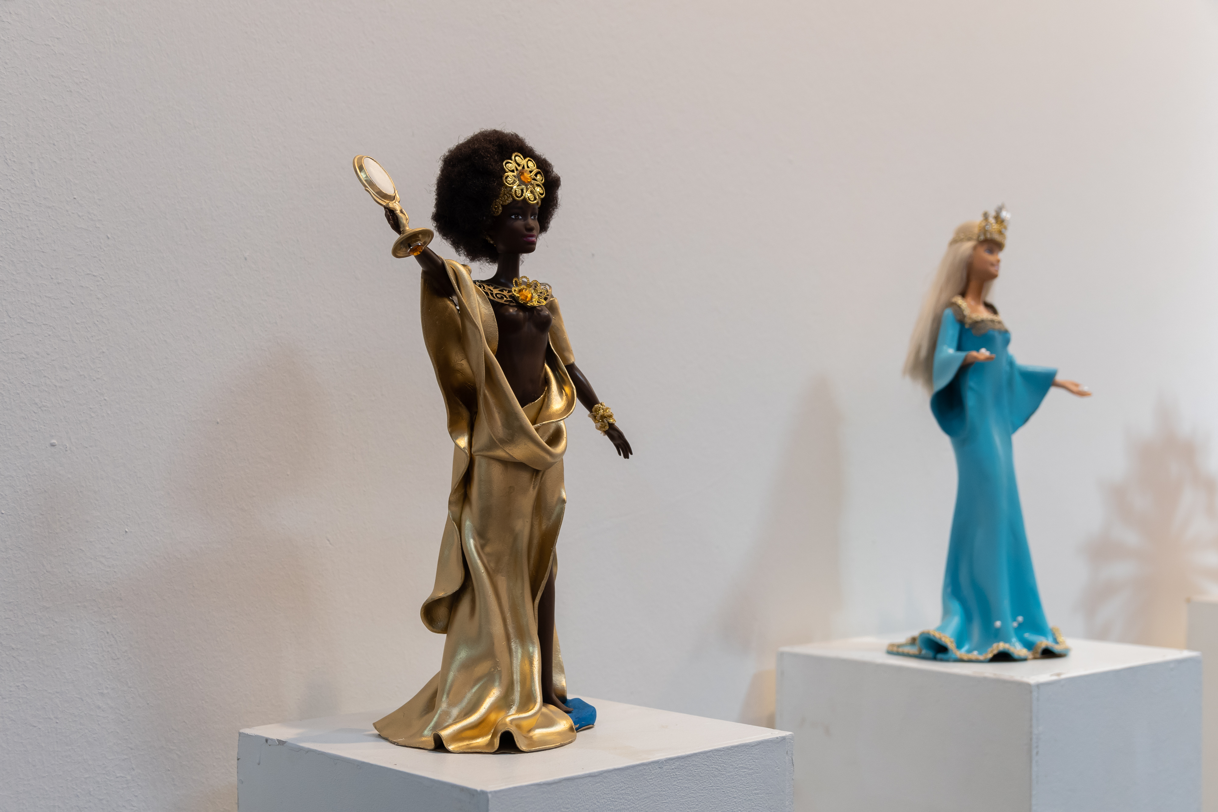 “A partir de un sincretismo, intentamos actualizar el arte sacro y recoger esa antorcha que quedó en algún momento tirada por ahí” contó el artista. Con la estética comic retoman y reinterpretan escenas bíblicas—como el descendimiento de Cristo de la cruz—, súper representadas por diferentes artistas, desde Giotto hasta Botticelli. Otras piezas que llaman la atención son las diferentes Barbies, estrellas de la sociedad de consumo, pero que aquí vienen a encarnar figuras como la Virgen del Luján o la Virgen de Guadalupe.