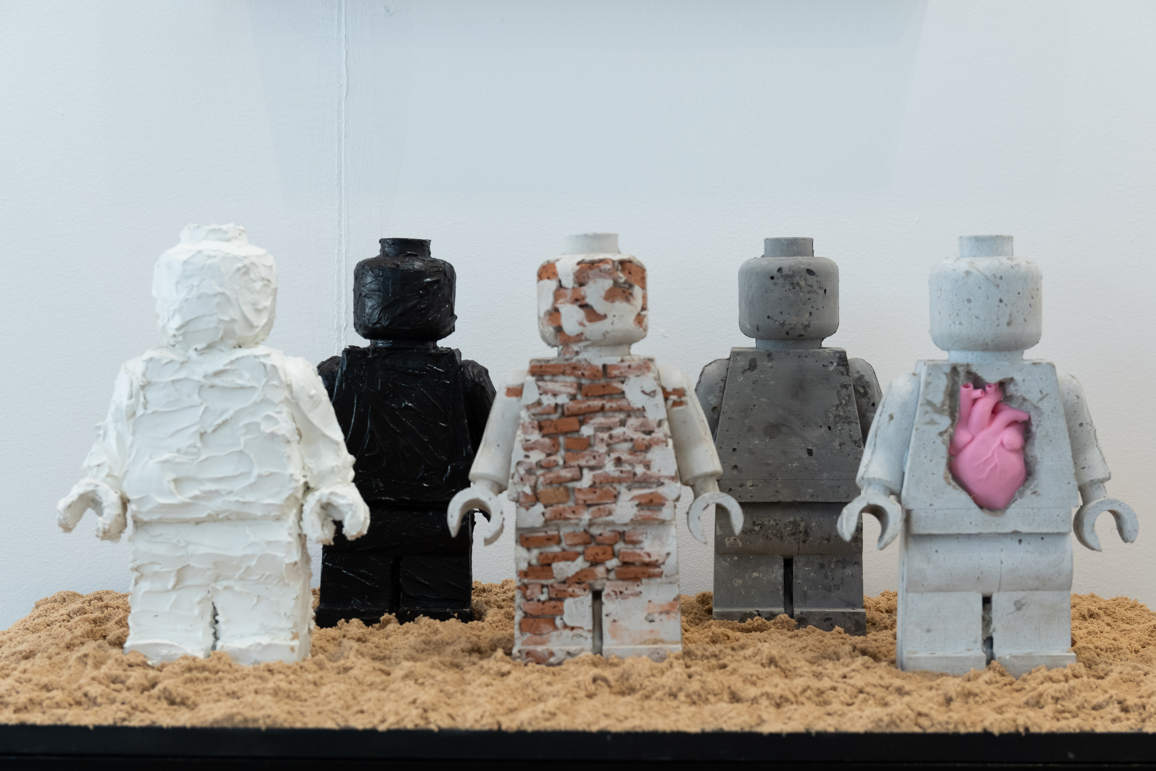 Con una técnica impecable Ana Rizzi se adentra en una figura propia de la industria del juego y el entretenimiento: los muñequitos lego. A su vez se anima y juega con el nombre; aparece en algunas creaciones “ego” en lugar de “lego.” El gesto me transporta a las latas de sopa de Warhol y esa crítica implícita a la sociedad de consumo.