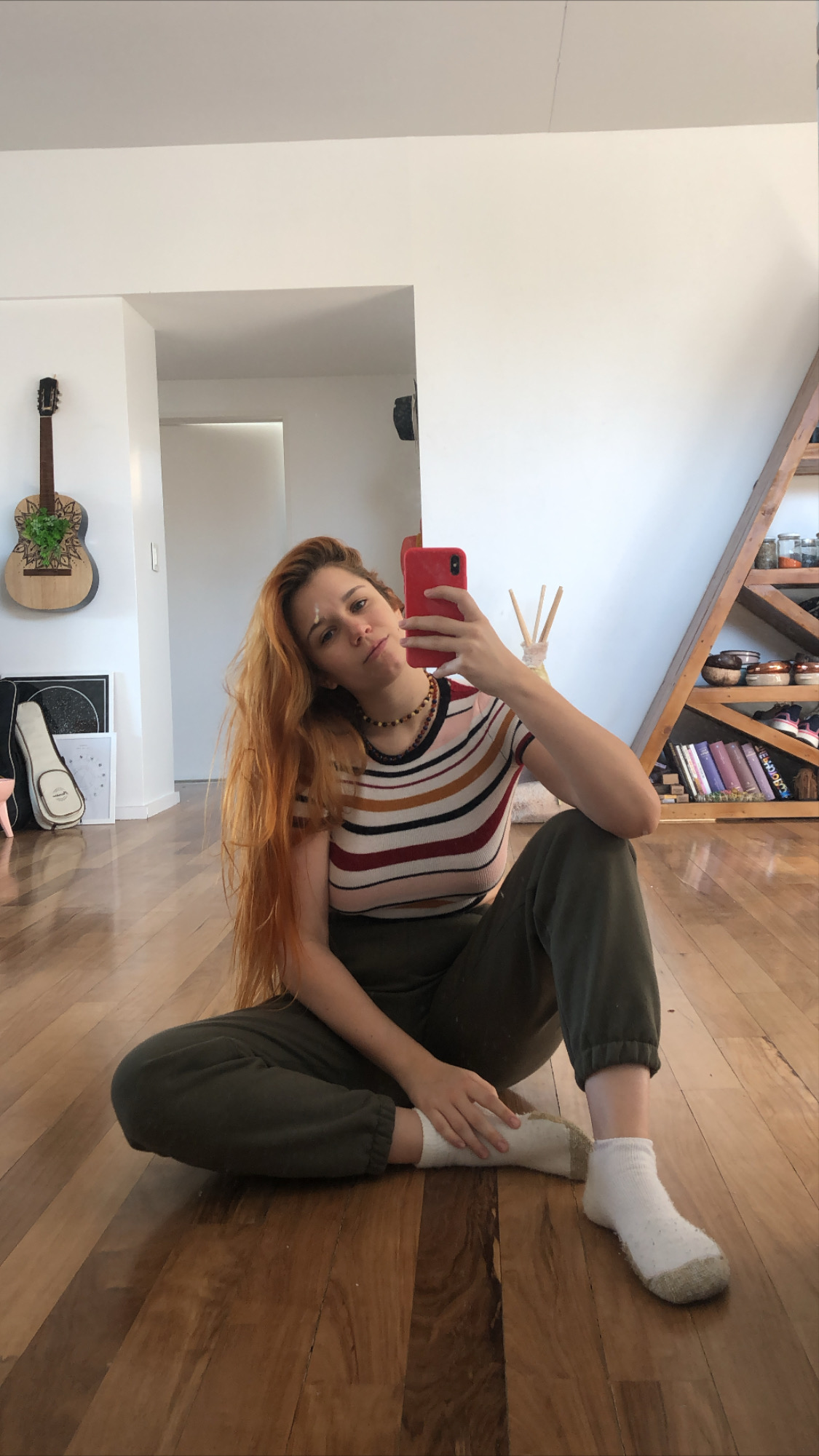 «Momentos de ansiedad y estrés no tuve muchos a lo largo de la cuarentena. Estoy súper tranquila con mi novio y mi perrito. Tenemos comida, internet y trabajo. Yo creo que ya de base partimos de un lugar bastante amigable. Es una situación extraña y es muy triste ver todo lo que está pasando afuera, y lógicamente, uno tiene ganas de ver a sus amigues y a su familia…»