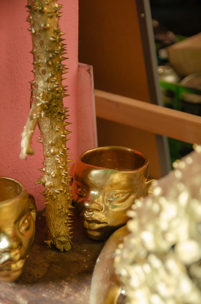 Ya sean sus esculturas, sus mega pinturas, sus fotos o sus adornos, todo lo que Kaumann crea viene con un sello muy personal. Una esencia difícil de ocultar, ya que brota, como los potus que cuelgan del techo en su taller.