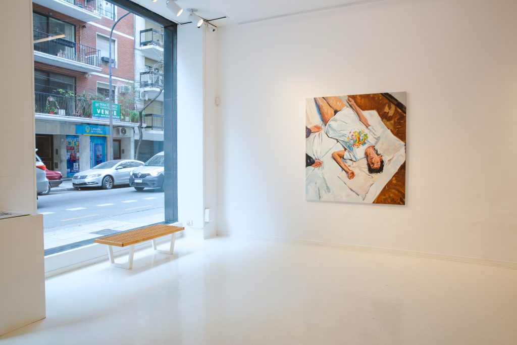Para Lola el arte está vivo, la capacidad de cambio se esconde bajo su halo. Es una fiel creyente de la necesidad de alivianar el arte y la vida, intentar hacerlas más simples y cargarlas de instancias de disfrute. Con esa impronta – nos contó en una conversación con MALEVA -, se dedica a su pintura. Y por más de que en esta exposición el espectador se descubre dentro de situaciones congeladas, insertos como in media res dentro de momentos de gran intimidad, la artista logra aligerar el drama y acercarnos a un “sentimiento compartido” describía Ríos.